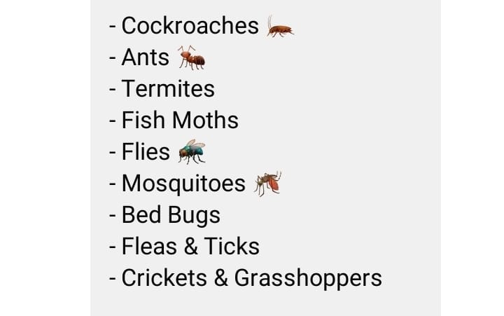 It kills bed bug, mosquito, files, cockroach and many more