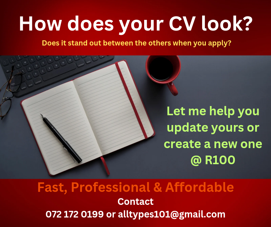 General typing, CV update or compiling, Logo design marketing material. No job too big or too small. PDF to Word documents. Let me assist.