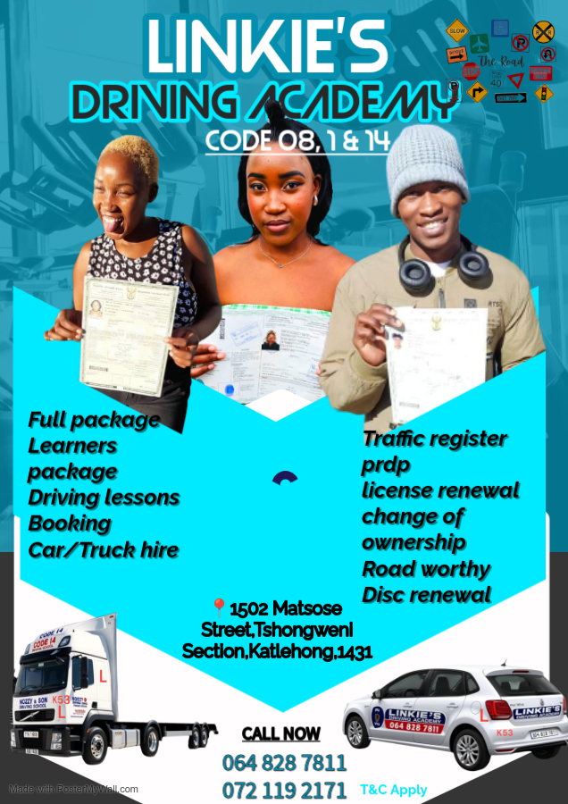We do assist with learners and drivers license for all codesCity and Suburb - Germiston