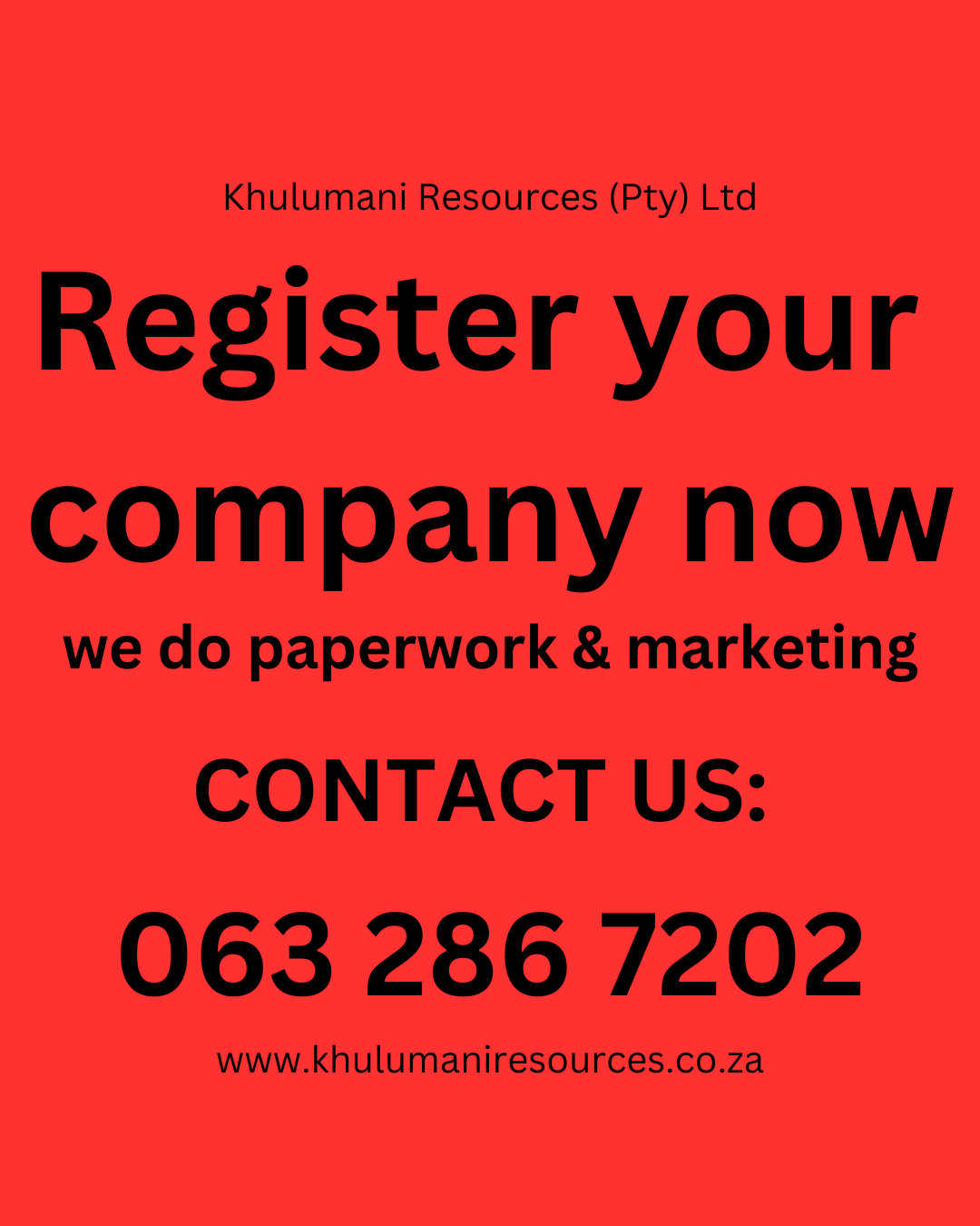 Register your Company now: Everyone welcome: 063 286 7202view more
