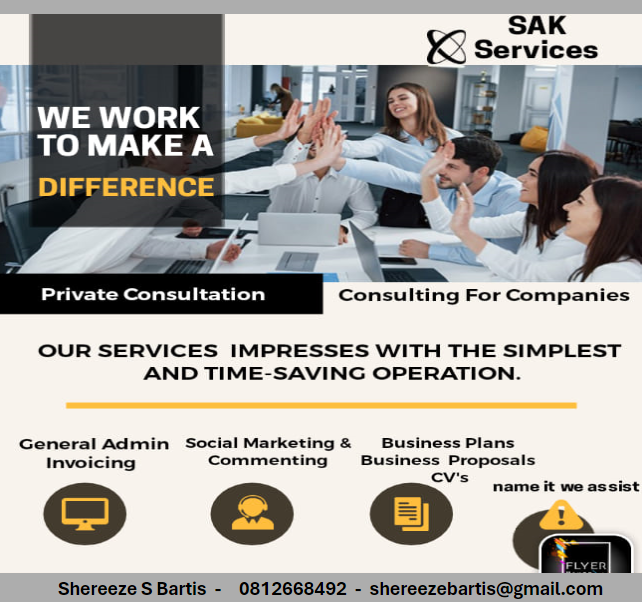 SAK S Services offers a wide range of assistance, catering to the needs of companies, small businesses, and individuals alike. Whether it's admin work, taking minutes, drafting CVs and cover letters, or handling business plans and proposals, we provide comprehensive support at affordable rates. Additionally, we also specialize in digital filing, social media marketing, and conducting research, among other services.