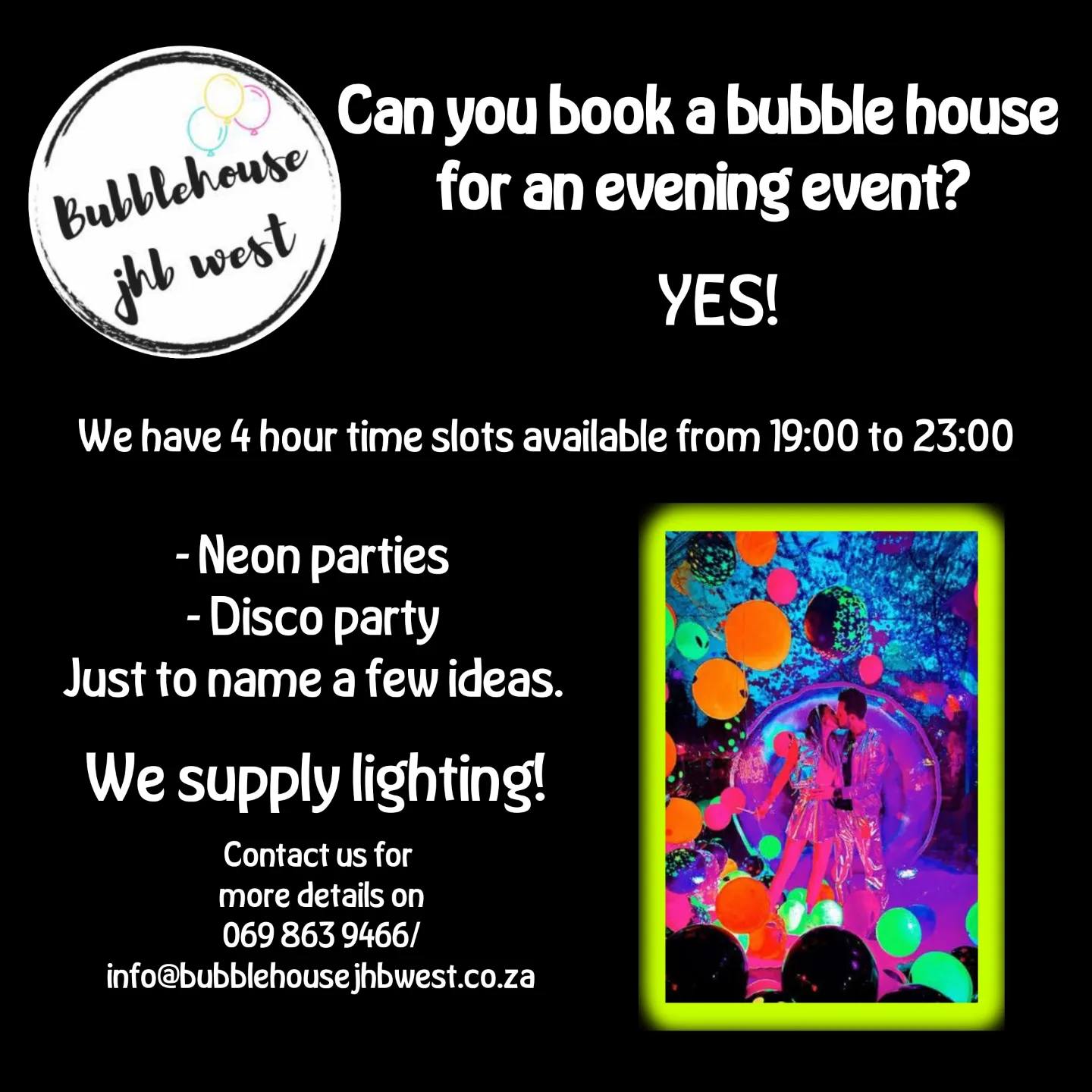 Reach out to Bubblehouse JHB West for more details and let's make your event unforgettable! 📩 #BubbleHouse #EveningEvents #EntertainmentOptions #PartyTime