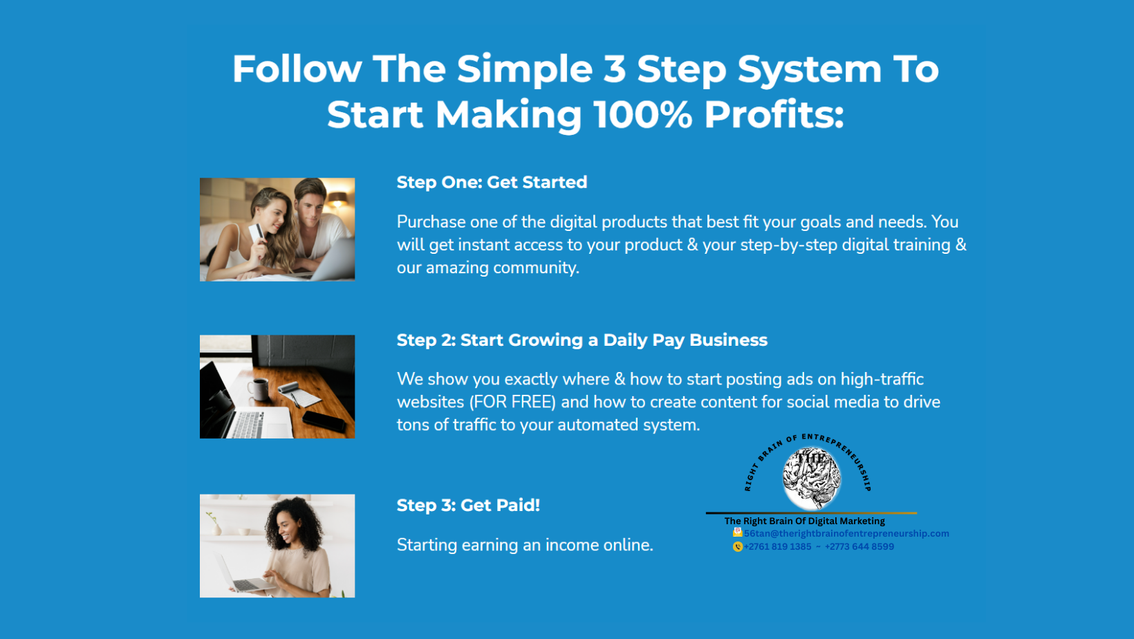 Get access NOW to our step-by-step blueprint to achieve 100% profit and automate your PAY with online digital products!