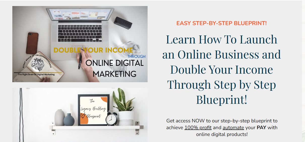Learn How To Launch an Online Business and Double Your Income Through Step by Step Blueprint!