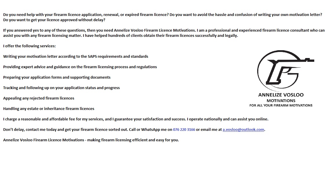 Need help with your new firearm motivation, renewal of your firearm licence or expired firearm licence?