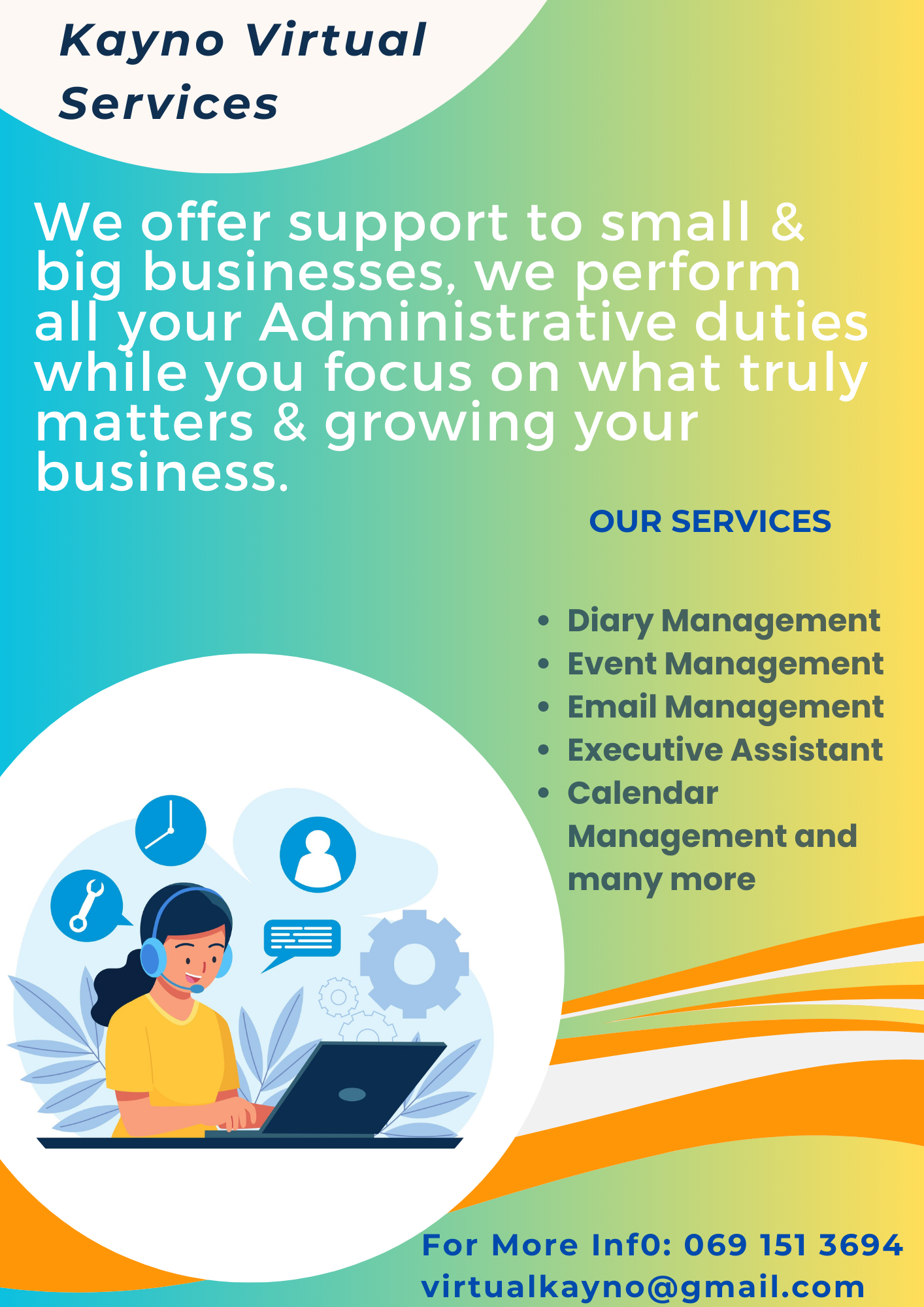 We perform Administrative duties for small and big Businesses. Our services includes: General Administration, Diary Management, Event Management, Email Management, Calendar Management and more.