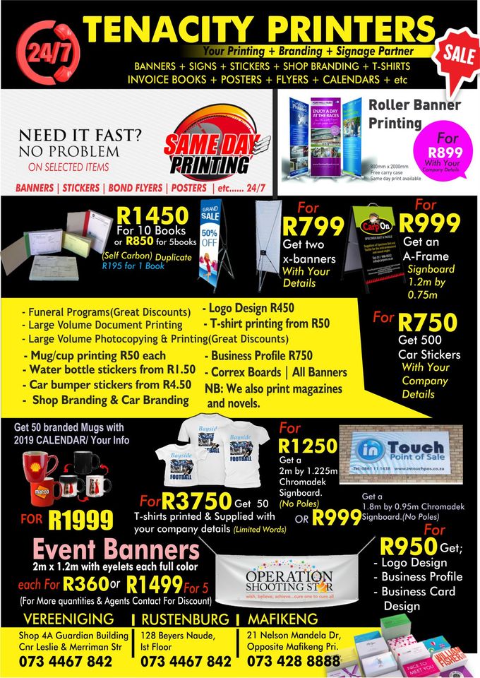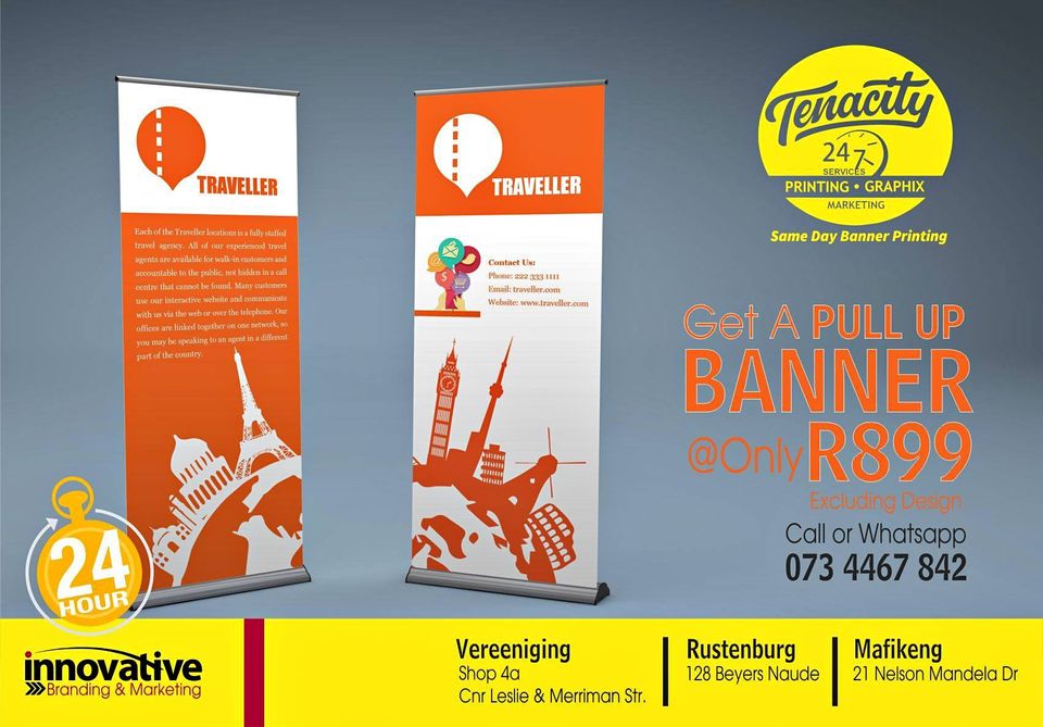 Get a printed pull u banner with your company details or brand for just R899. we also provide same day 24/7 printing services in vereeniging. We deliver allover Vaal and Gauteng