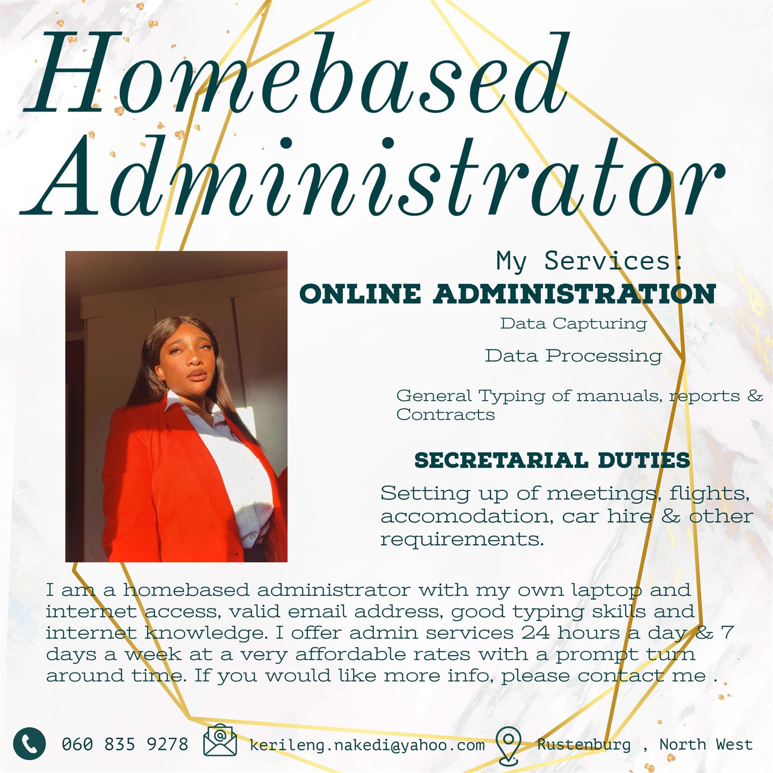 Data Capturing, Data Processing, General typing and secretarial duties.. More details: