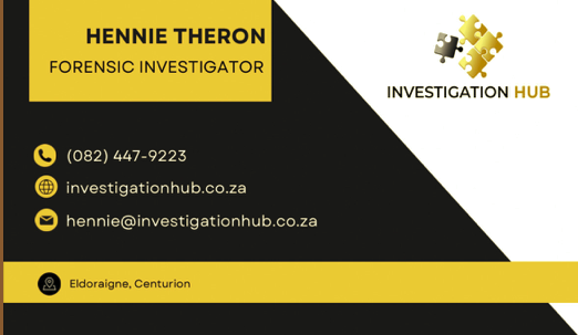 For over three decades, Investigation Hub has been at the forefront of providing expert Private Investigation, Criminal Investigation, and other investigative services in South Africa. Established in 1989 by Hennie Theron, our dedication to excellence in investigative work remains unwavering. Our experienced and highly qualified team, registered with PSIRA and ACFE, is committed to delivering top-notch services that meet the highest industry standards.