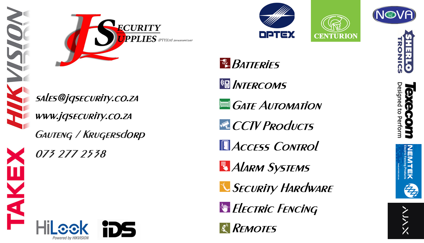 For Affordable, Warranted and High Quality Products - HikVision, Hilook, Centurion, Optex, Texecom, Takex, DSC, Sherlo etc. look no further than JQ Security Supplies Ltd wich has 10 years experience in the industry!!!