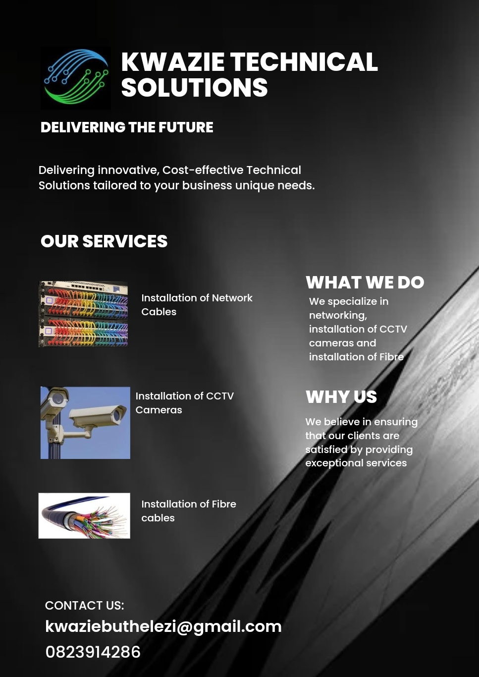 Installation of Network Points, Fault Finding & repairsInstallation of CCTV Cameras, Fault Finding and repairsInstallation of Fibre Cable.