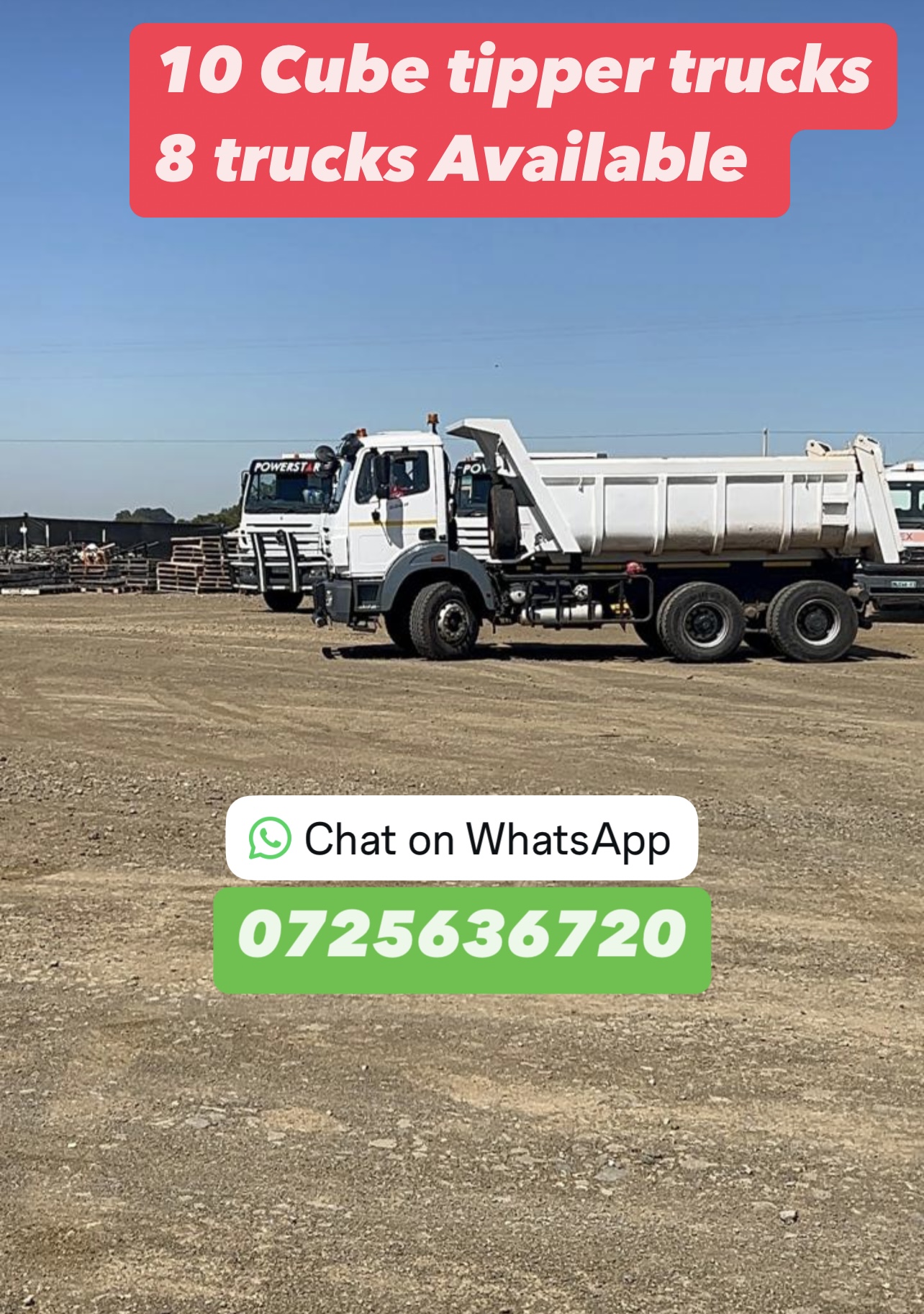 10 cube tipper trucks for hire in Johannesburg , Sandton, Midrand, Kempton Park, Pretoria, Rustenburg Brits and Mpumalanga