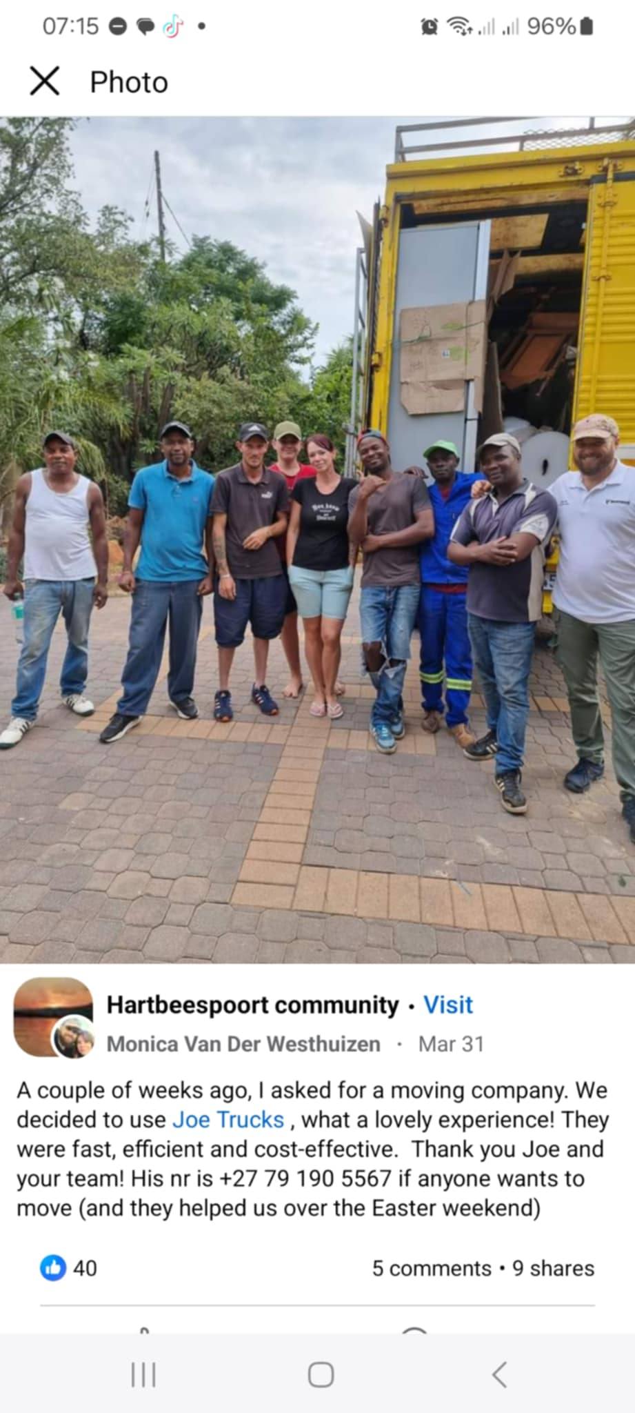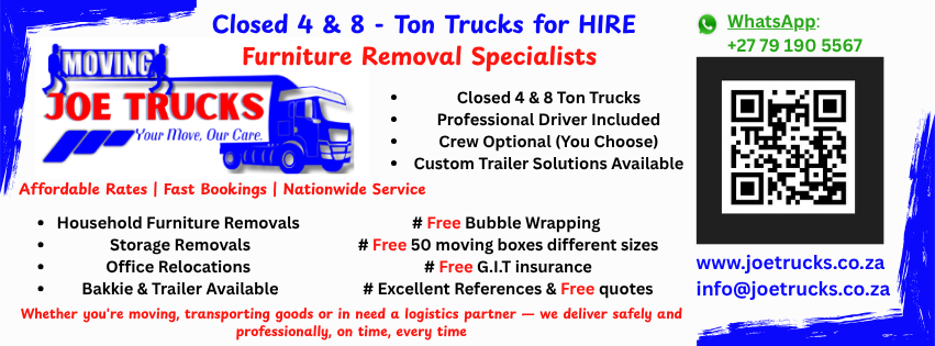 JOE TRUCKS Furniture Removals South Africa for a Free Quote
