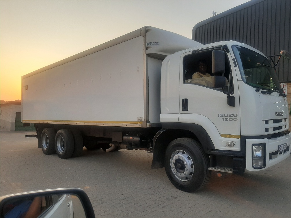 ISUZU FVM 1200 Body Van truck available for hire. It's a 12 Ton truck that is based in Midrand Johannesburg. We offer our services anywhere within South African borders.