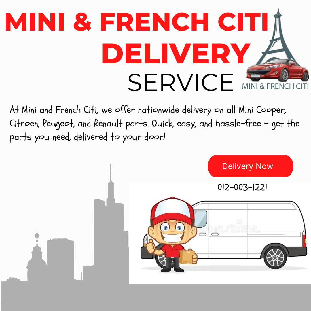 At Mini and French Citi, we pride ourselves on delivering car parts with speed, care, and reliability. Whether you need parts for your Mini Cooper, Citroen, Peugeot, or Renault, our efficient delivery service ensures they arrive at your door in perfect condition and right on time – every time!