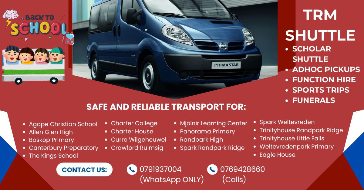 Scholar Transport in and around Wilgeheuwel, Weltervreden Park, Randpark Ridge, Honeydew, Radiokop, Allen's Nek, Radiokop, Rumisig, Amarosa, Constantia Kloof, Little Falls and surrounding areas