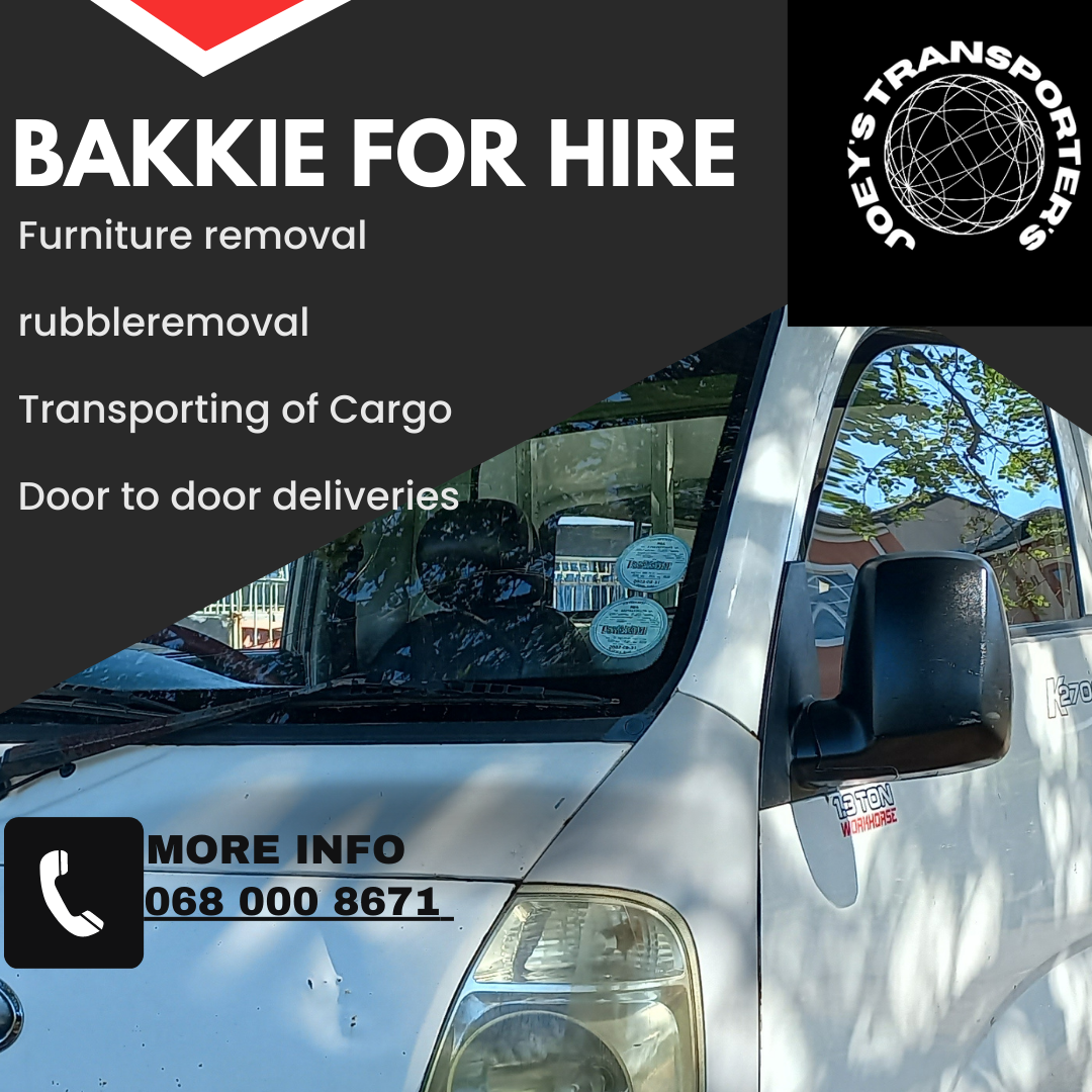 We have bakkies for hire h100 n kiaK2700 with drivers n boys if needed low rates guaranteed contact 068 000 8671view more
