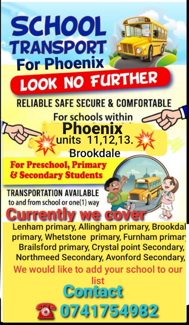 School transport available in Phoenix. Contact me on 0741754982view moreCity and Suburb - Phoenix