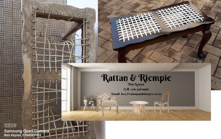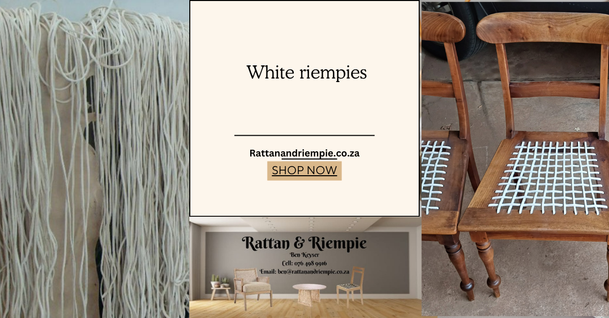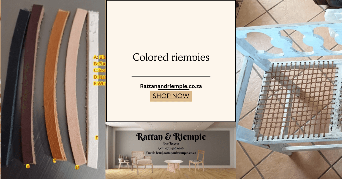 Sales of cane webbing (per meter), white chair riempies as well  the ever elusive black, chocolate or  teak leather chair riempies.