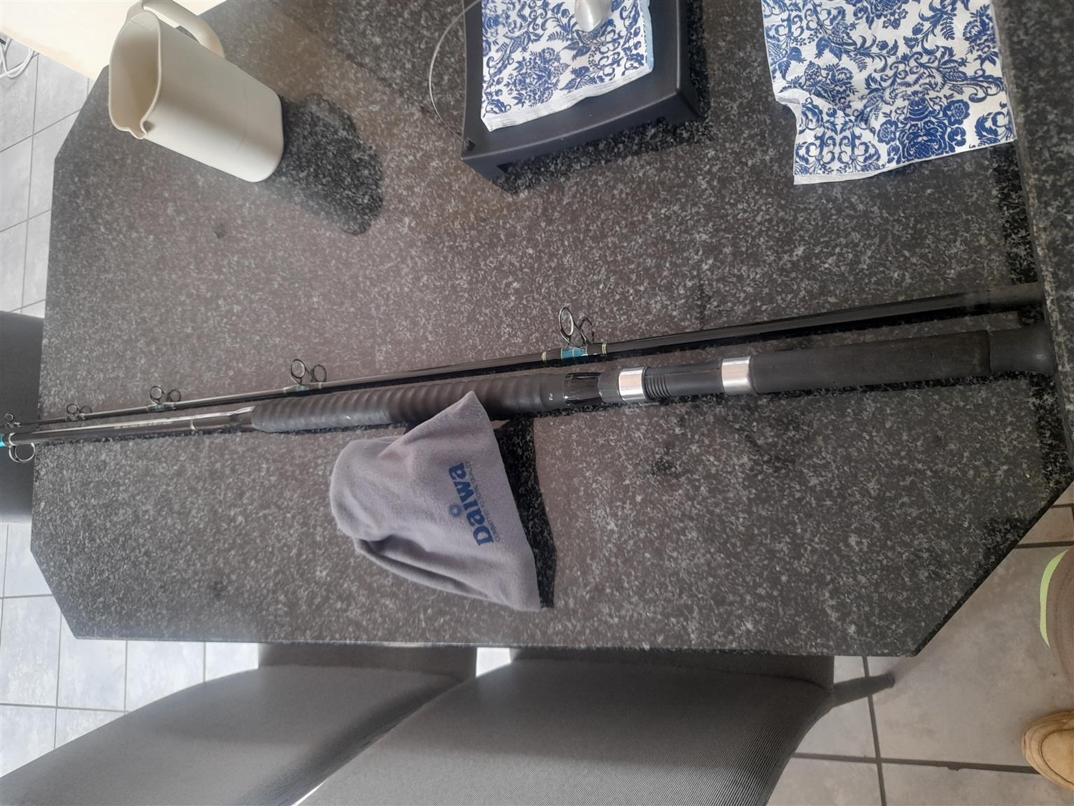 Diawa Sealine SL50SH with 500m 80lb whiplash braid backing and a Sensation Saltsmen 9ft edible fishing rod. Perfect set up for medium to big edibles and small to medium sharks and skates. Just needs topshot line.