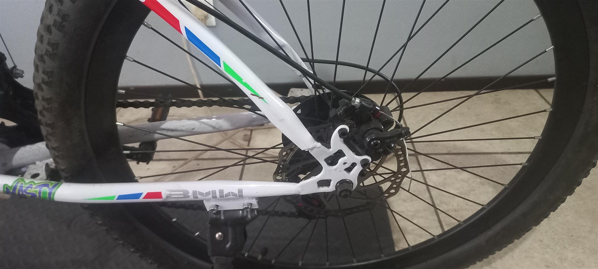 Very rare 26 inch BMW mtb-cruise 21speed. Shimano gears. Ventilated disk brakes, front air shocks. Very good condition. R4500. Negotiable. Cash only...Collection only.