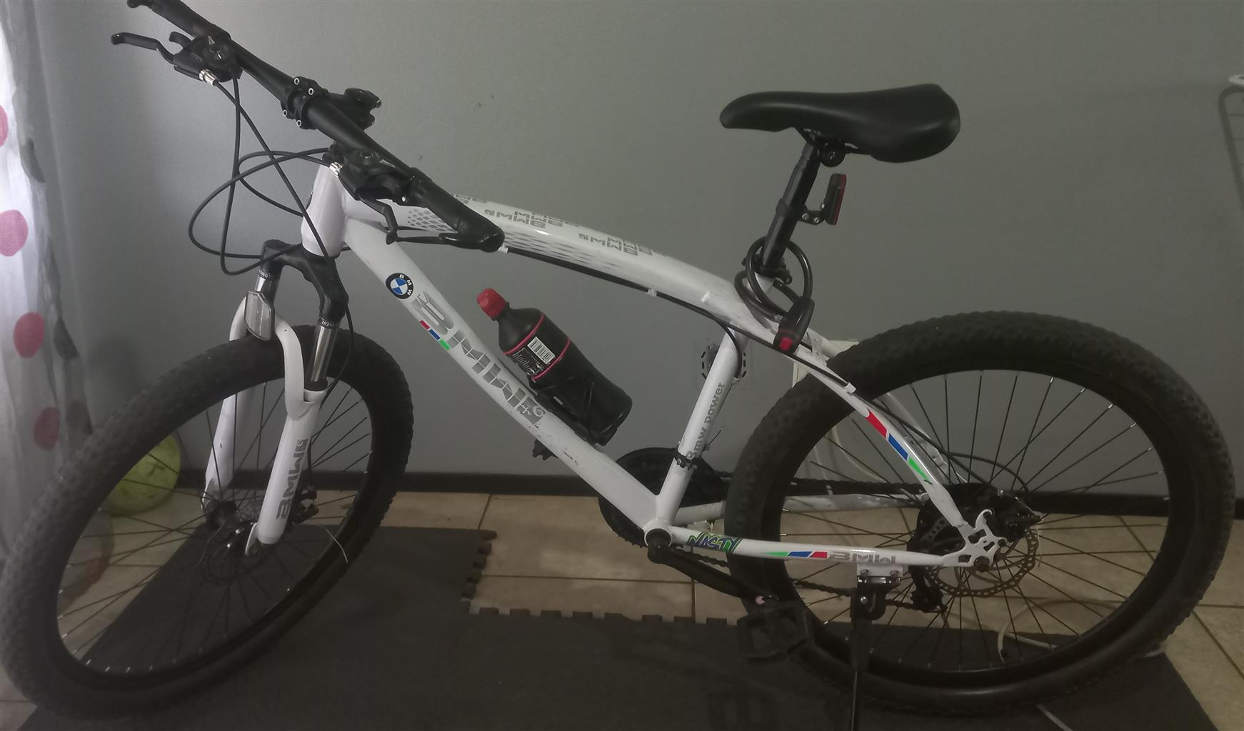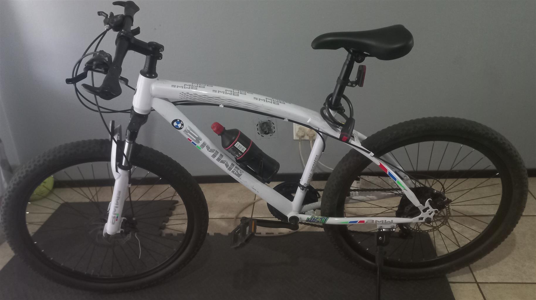 Very rare 26 inch BMW mtb-cruise 21speed. Shimano gears. Ventilated disk brakes, front air shocks. Stand, Aluminium rims. Very good condition. R3500 Negotiable. Cash only...Collection only.