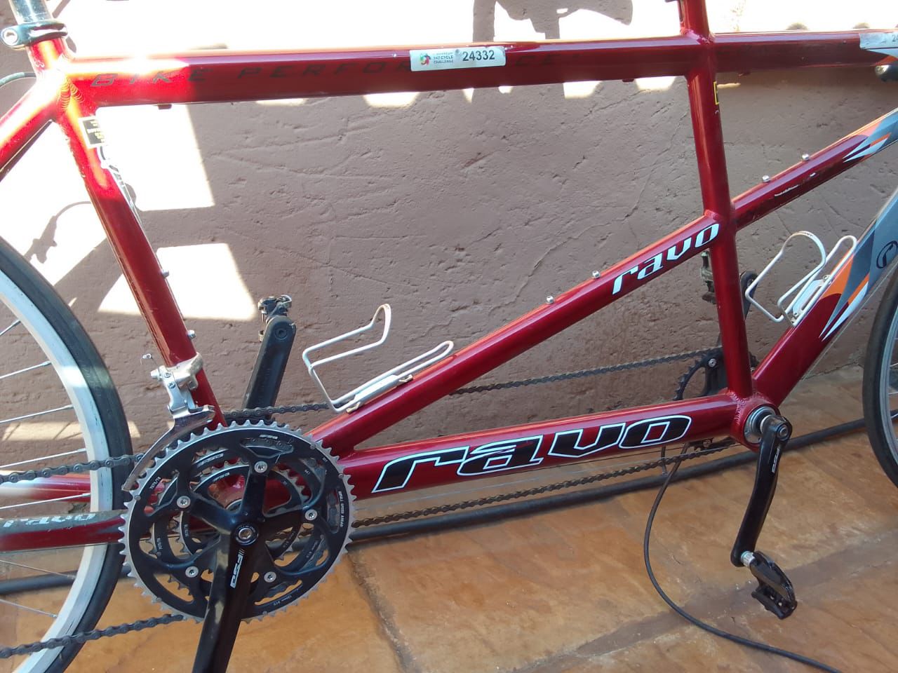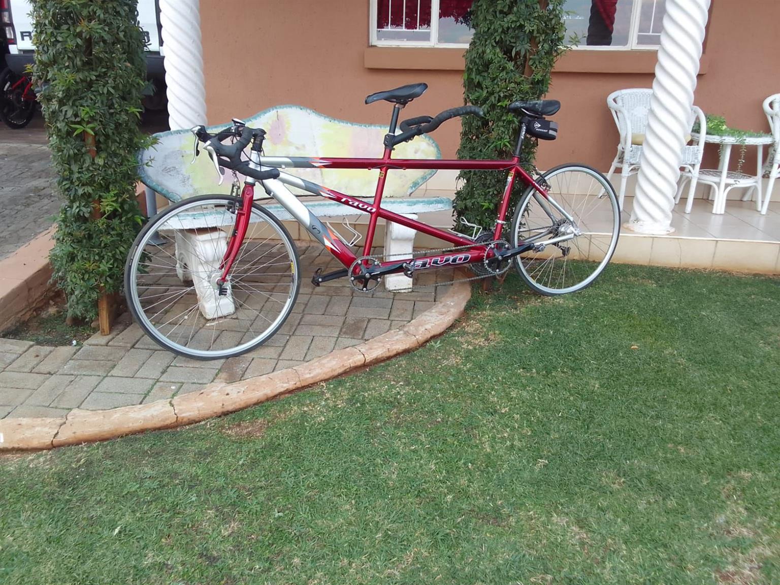 Ravo tandem bicycle 12 speed aluminium has few scratches but is in very good condition. It is a racing bicycle and has racing handles and seats and peddals are for cleats. It has Shimano gears and a speedometer. please inbox for any more questions or pictures. No uber pickups and immediate payments only or cash . can come down with price if needed a little