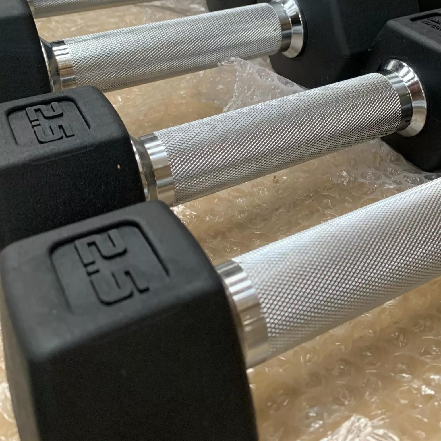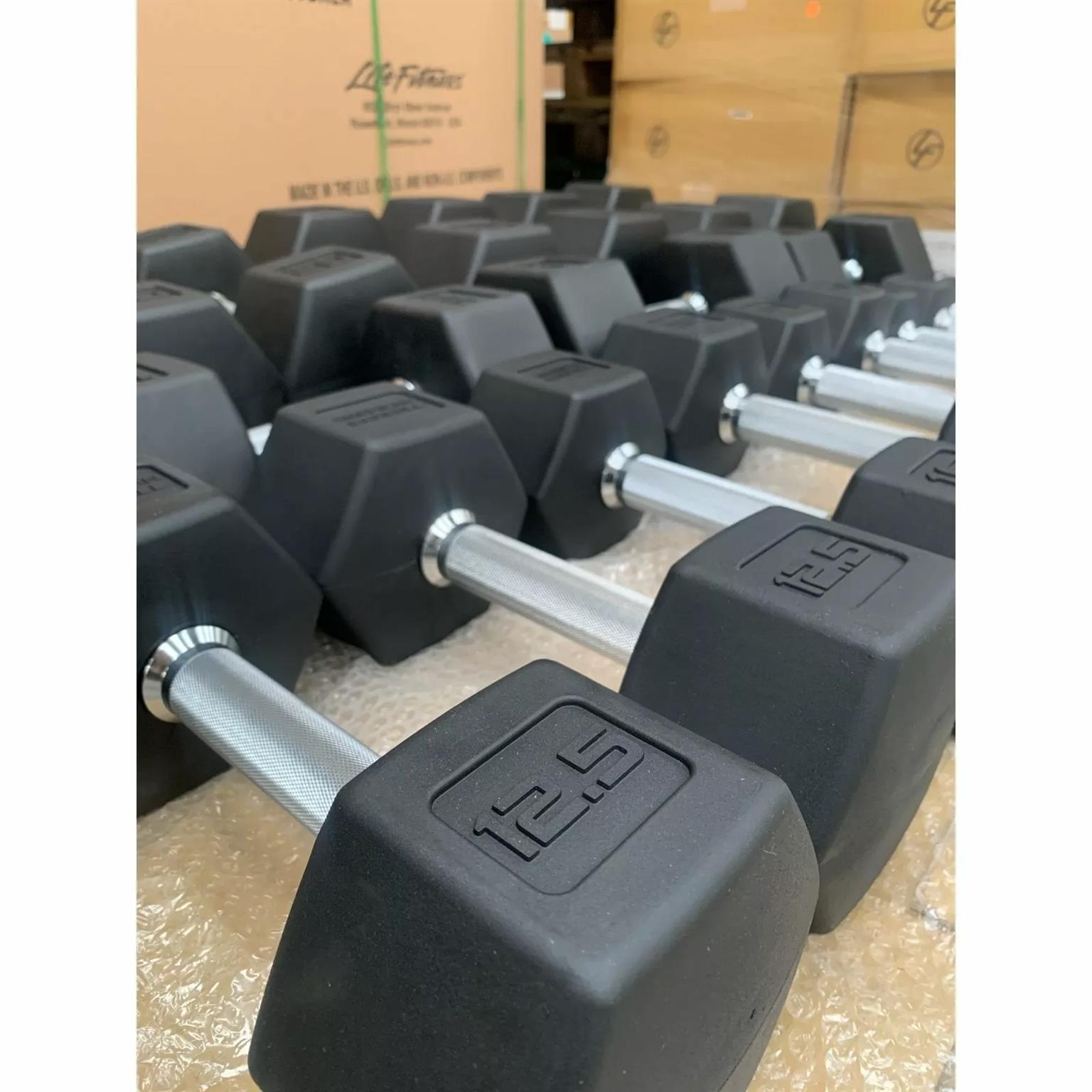 These rubber HEX dumbbells deliver the perfect balance of quality and price to any facility. They are overmolded with heavy-duty rubber, have tapered handles and large weight numbers to make them accessible and hassle-free for everyone.