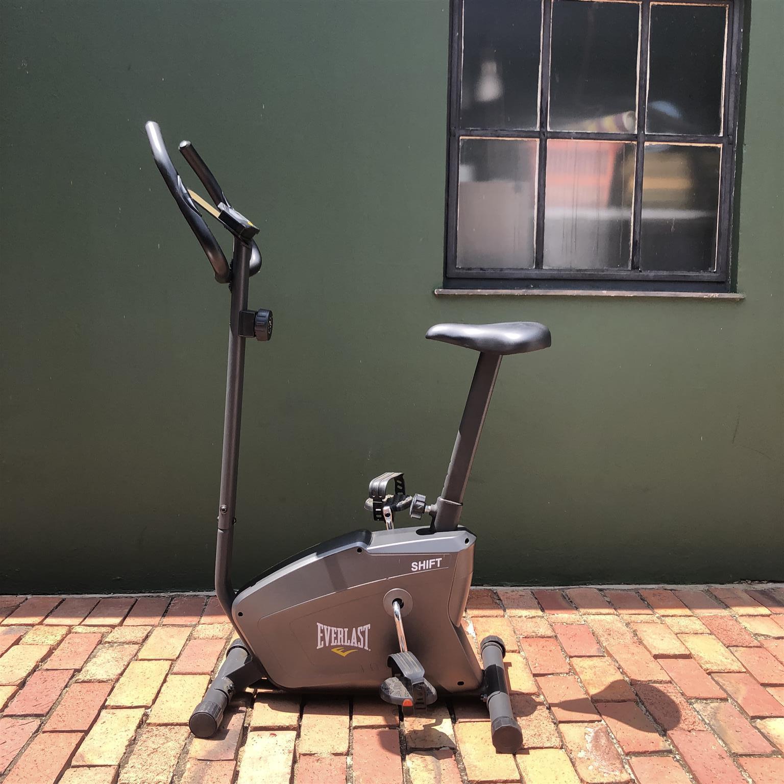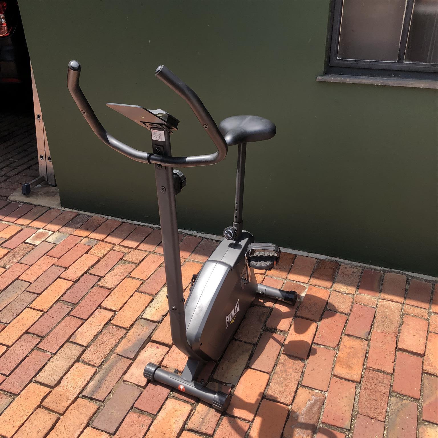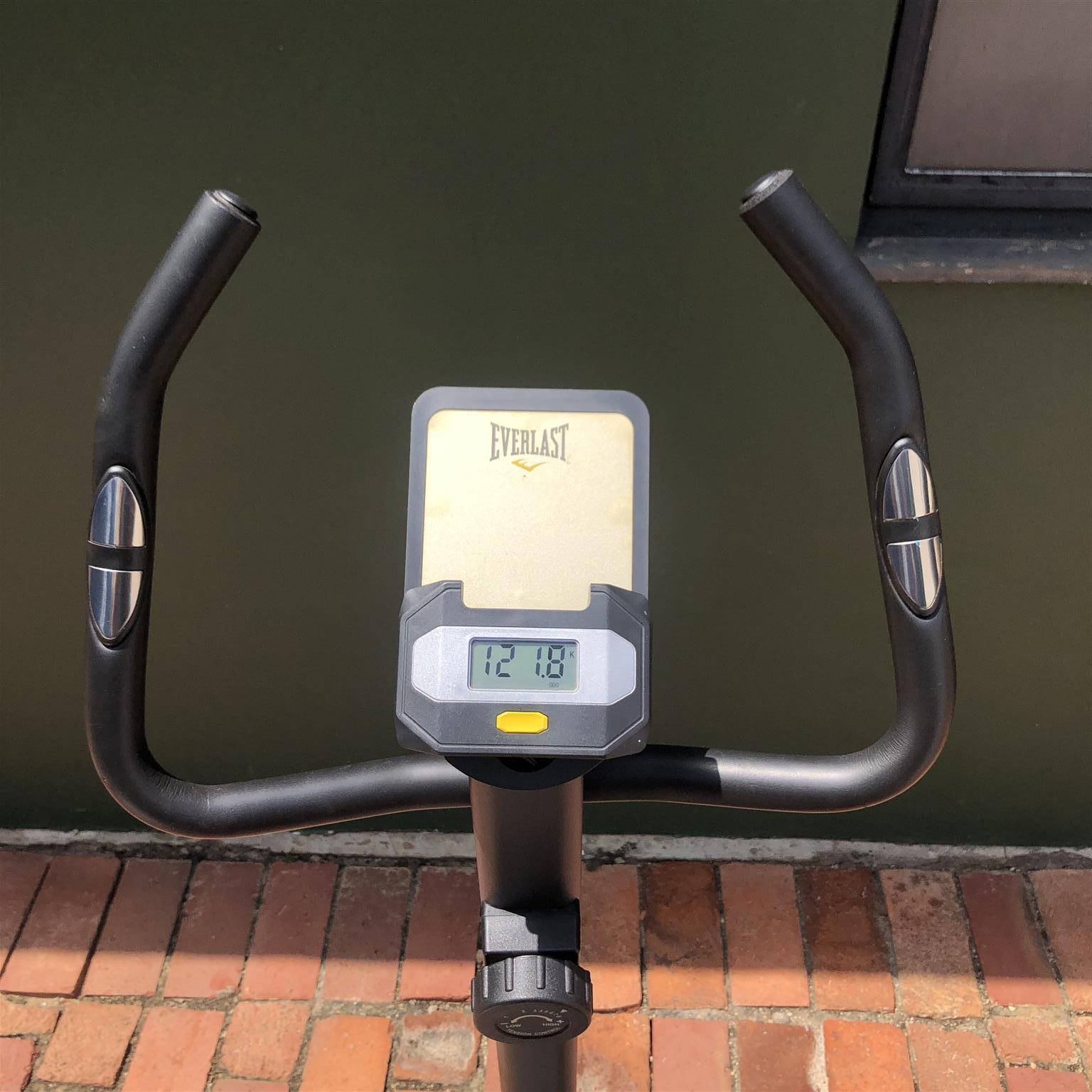 Computer and stainless steel sensor pads tracks heart rate, calories, speed, and distance. Low mileage.