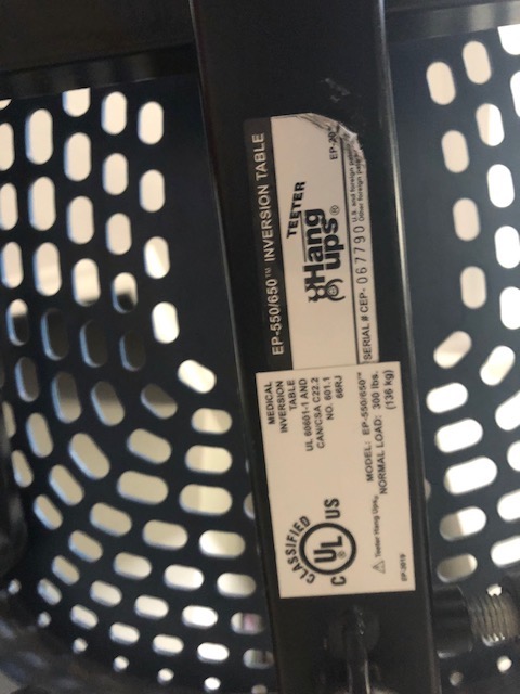 Inverter bed for home back treatment. Teeter Hang Ups. In good condition. Relieve and treat back pain at home.