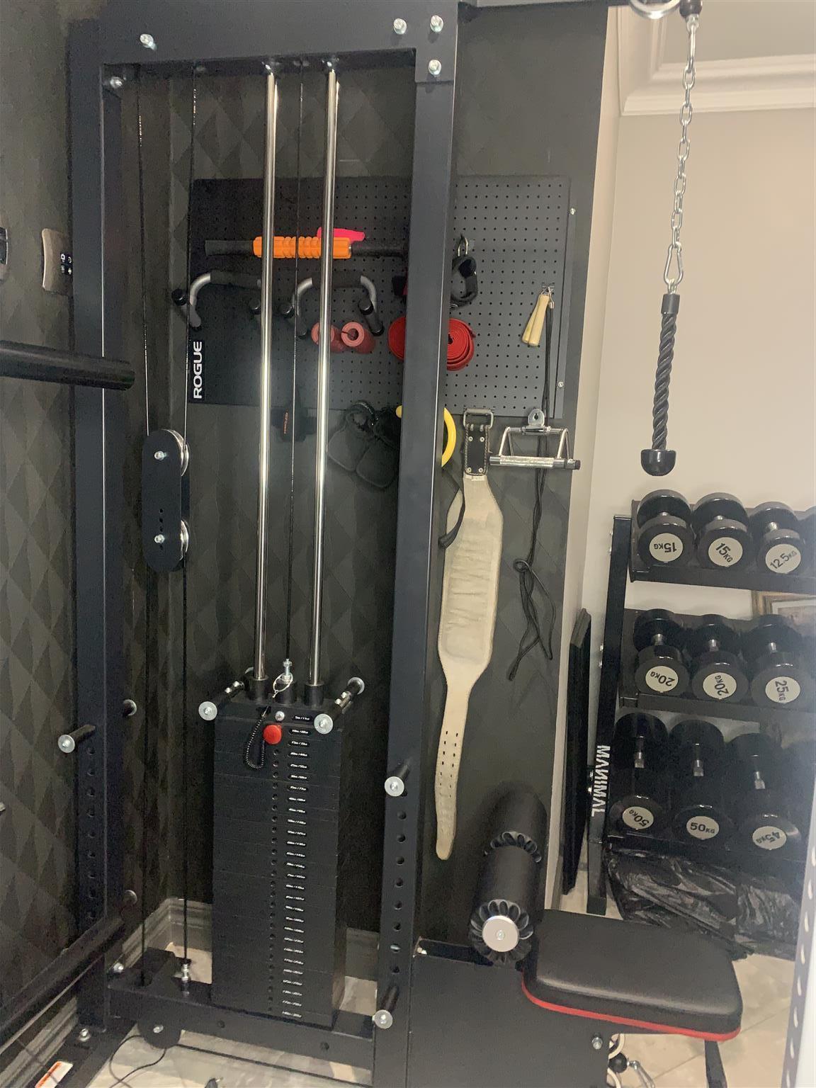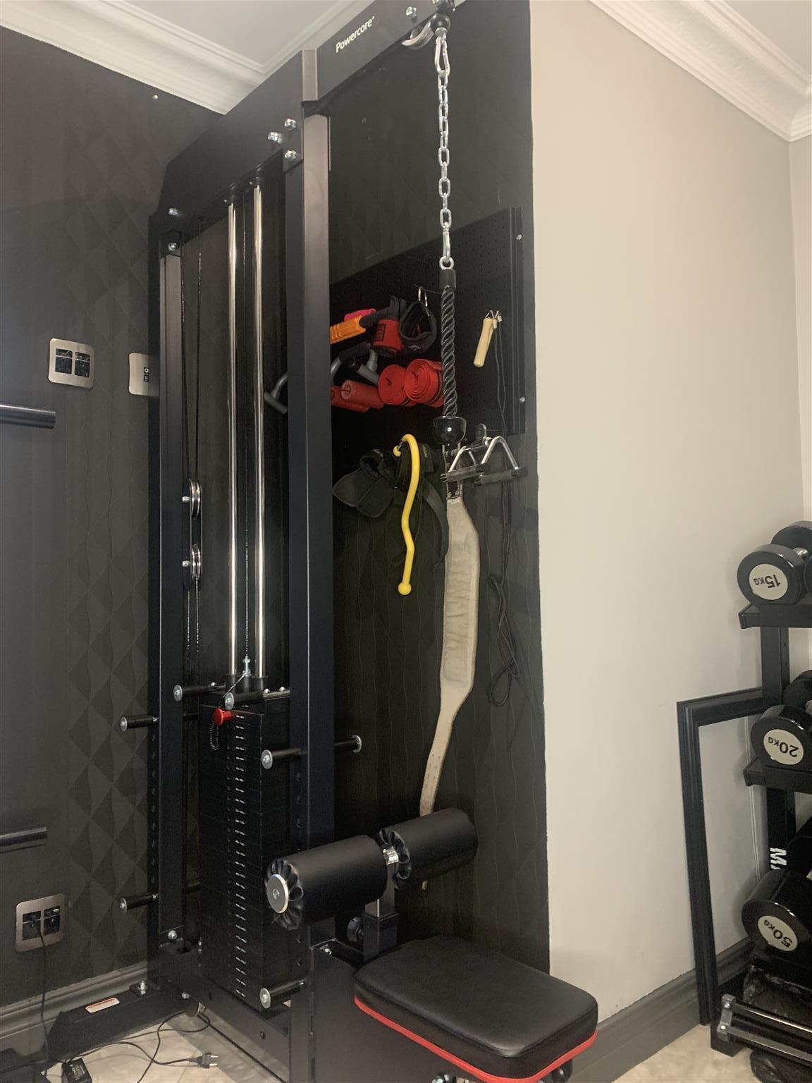 It features a lat pull down and a low row. Weight increments start from 4.5 – 136 KG. This piece includes various cable attachments and it takes up very little room compared to other cable machines.