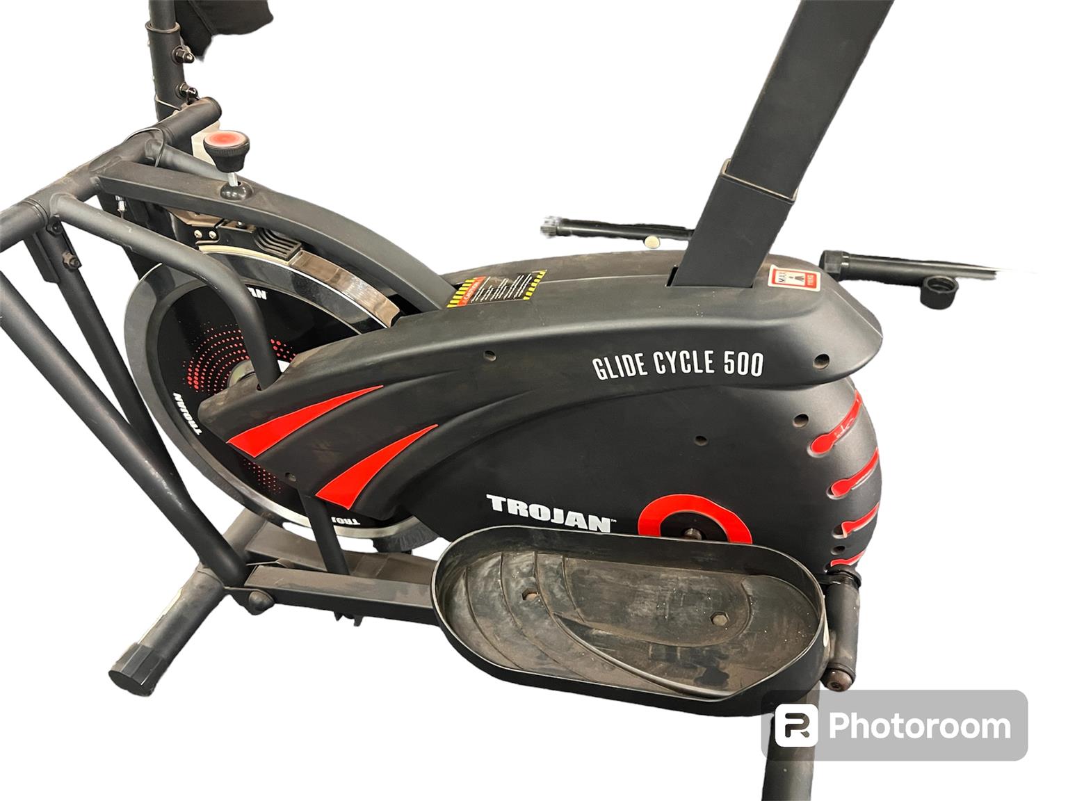 Trojan Exercise Bicycle Glide Cycle 500 (Store Collection) for sale R2299.00. In a good and working condition backed by a six month guarantee. Black and red in colour. Reference : BMNT023464