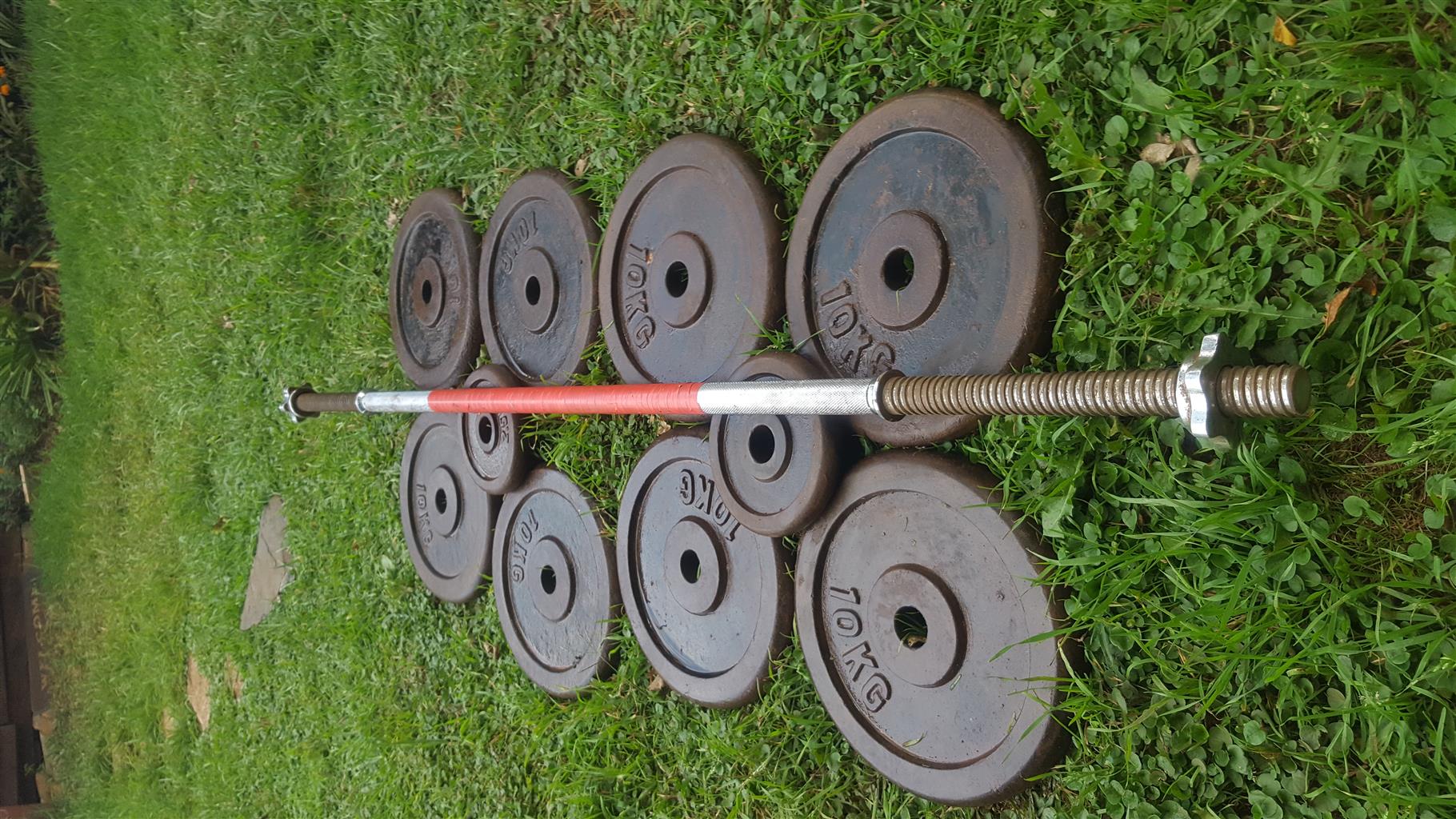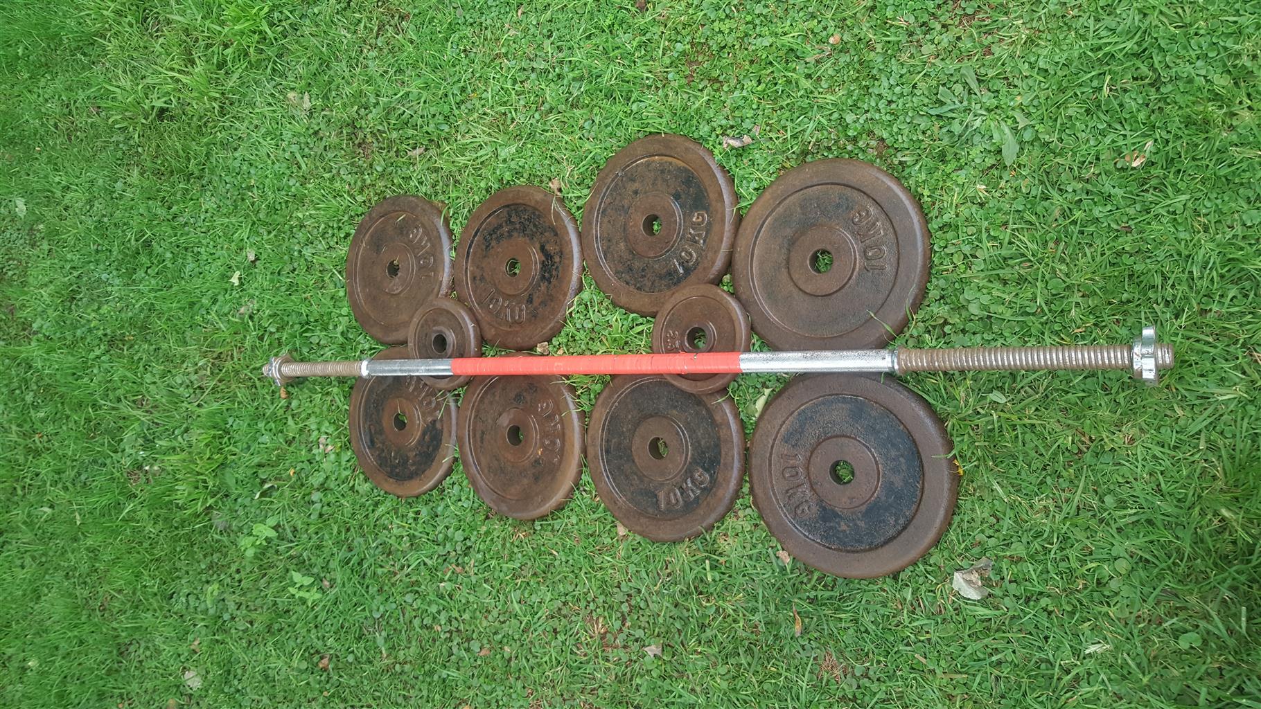 An Barbell, clips & 10kg plates × 8 & 2.5kg plates × 2