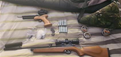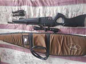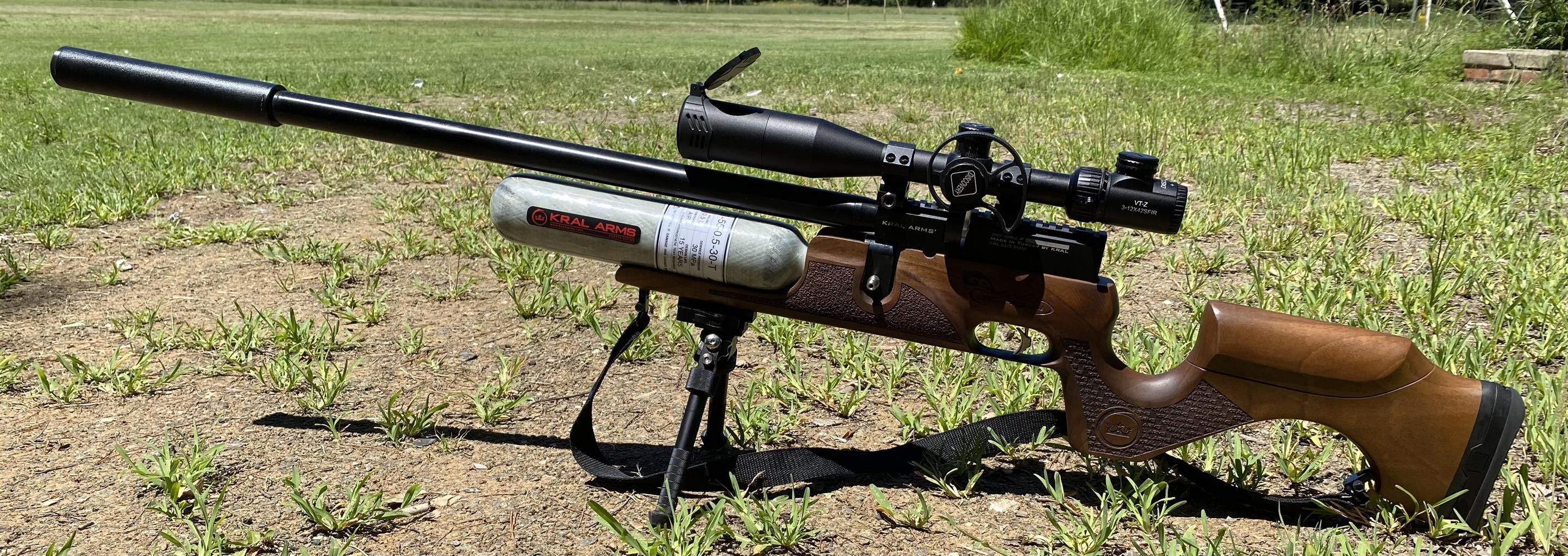 Kral Bighorn .22 with super valve and 300bar carbon bottle. Rifle used for NRL22 matches, shoots 28-30gr slugs at 58fpe, rifle sold without scope, bipod and silencer, packets of slugs also goes with rifle
