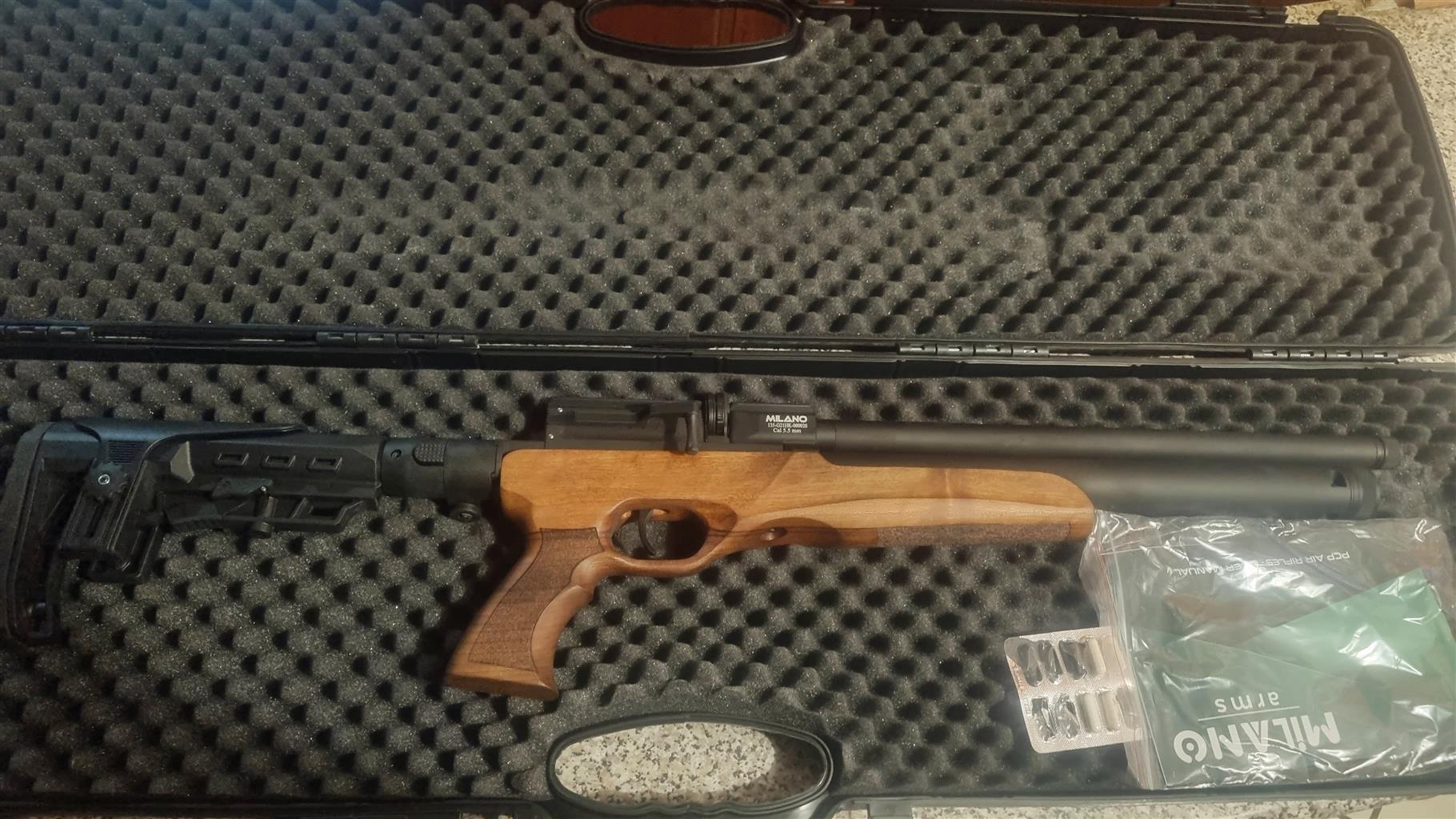 BRANDNEW MILANO T2 PCP RIFLETACTICAL FOLDABLE BUTTWALNUT STOCK×2 MAGAZINES HARDCASEFORR8000PLEASE CALL/WATTSAPP ON 0636362239view more