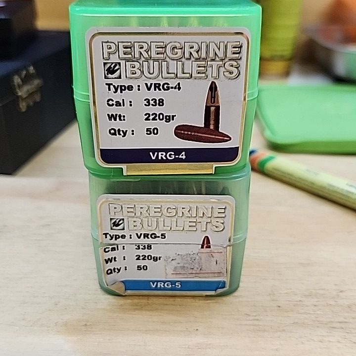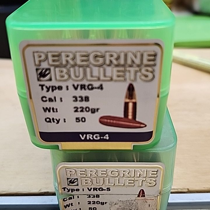 220gr 338Cal. Peregrine VRG-5x 50 hunting and Peregrine Vrg-4 Target x 50.