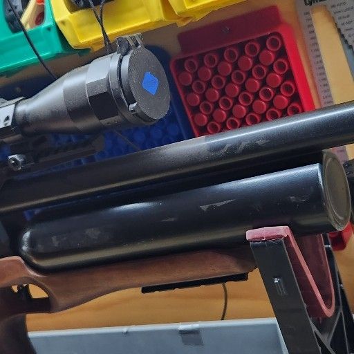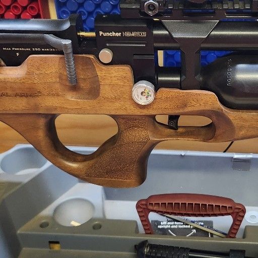 Kral Nemesis multicaliber, 3x barrel with Discovery 4-14 Second Focal plane scope, in Carry case, extra mags, conversion kit for 177, 22 and .25. Tuned by Pellet-guns.com @54 ft/lbs. Postage for buyers account.
