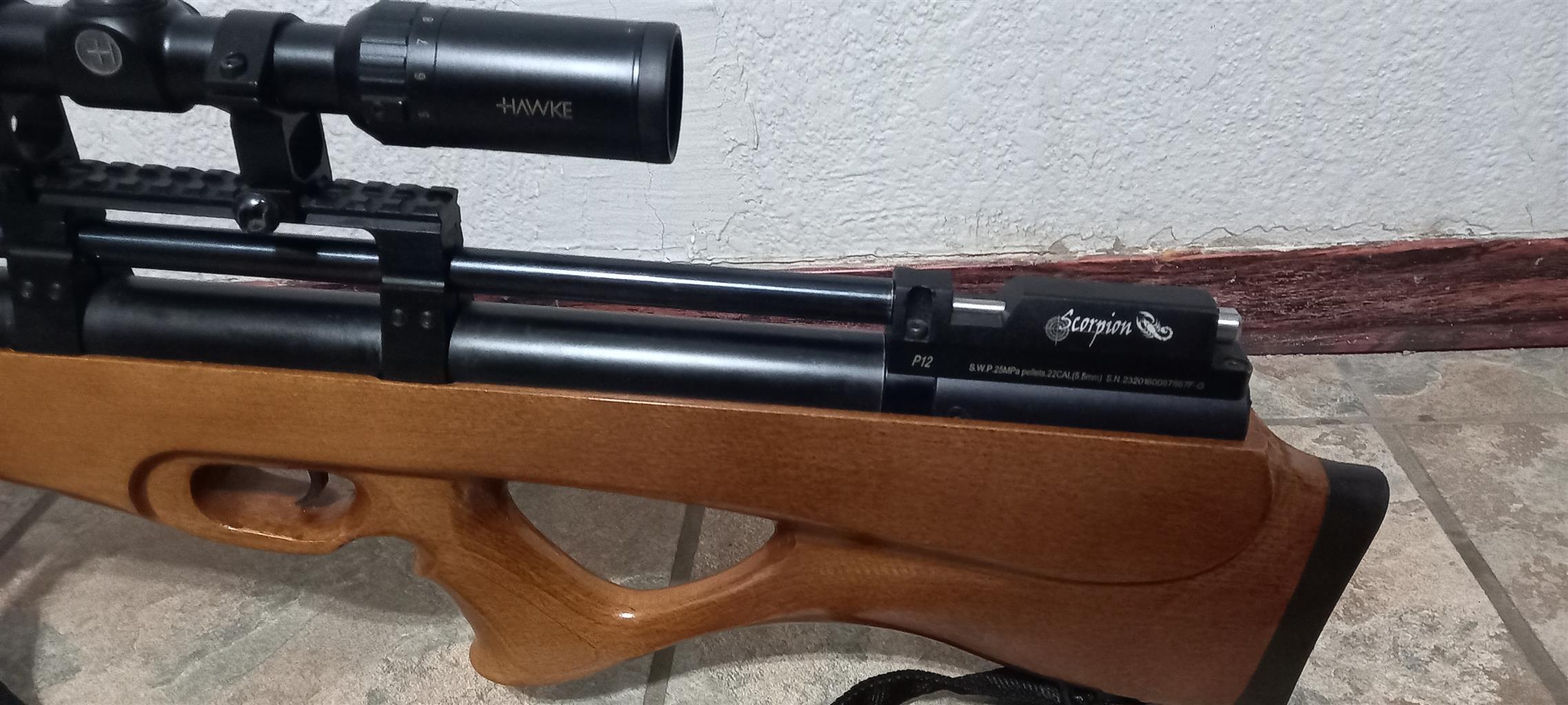 Scorpion p12 .22 in very good condition and just had a service. Comes with after market LW 530mm barrel, hawke vantage 3-9x40 scope, barrel shroud/silencer, rifle sling, filling probe, atlas type bipod and good quality canvas rifle bag. Tuned to shoot jsb 18,13gr pellets at 890fps extremely accurate. Whatsapp on 0793536838view more