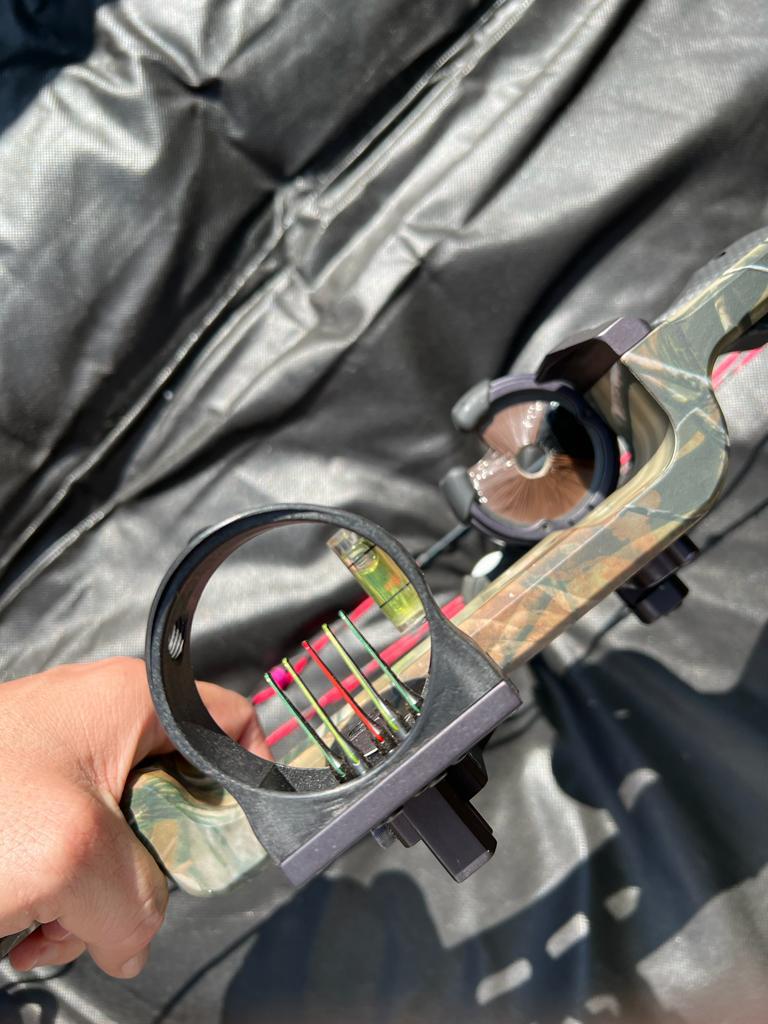 Draw length 27'' adjustable with stabilizer 5 pin sight and arrow rest, comes with bag and 6 arrows, R4000Neg