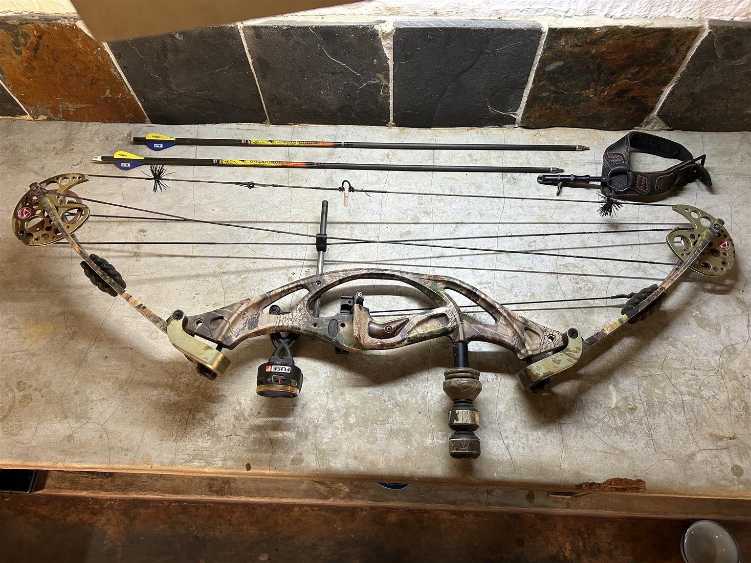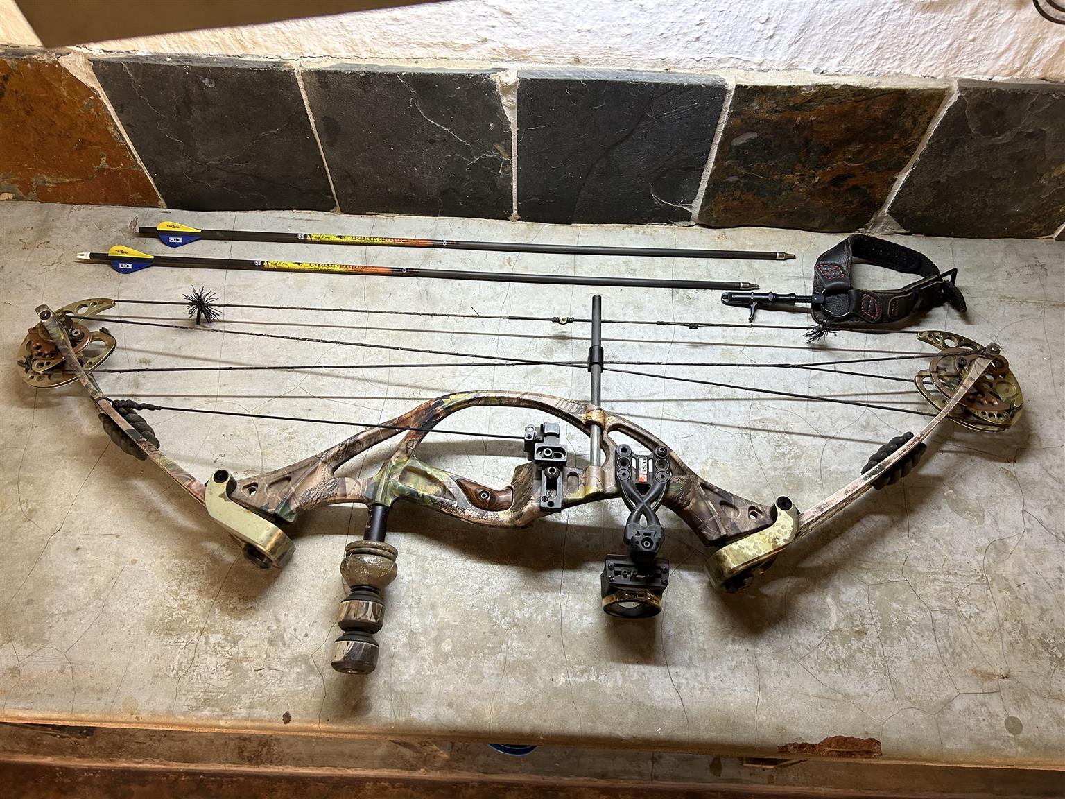 Compound bow, trigger and 2 arrows in very good condition. We are not hunting anymore and it is the ideal bow for leasure hunters.