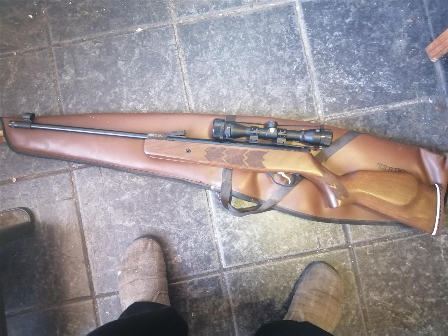Webley Stingray 2 Quatro pellet gun 5.0mm in excellent condition with Nikko Stirling 4x32 scope attached, included is silencer and laser sight and leather carrying bag with 200+ rounds of ammunition.
