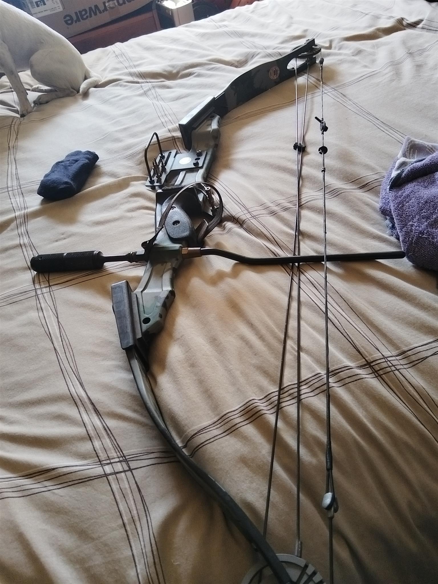 70 to 80lbs pull, 29 inch draw and 35inch length.With 5 arrows and points