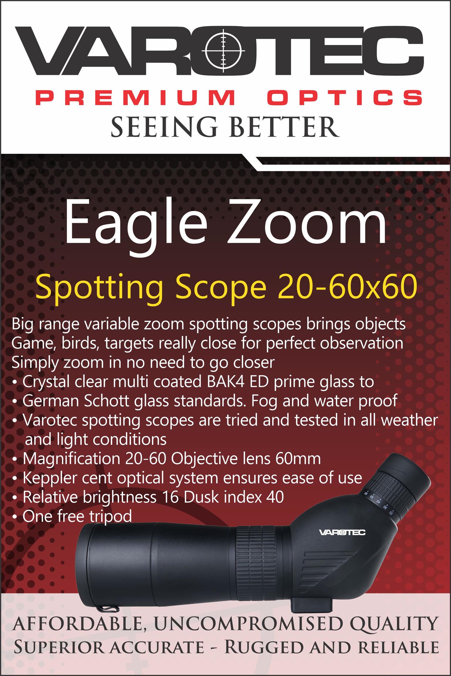 Varotec Eagle 20-60x60 Spotting scope Best crystal clear lenses to Schott Glass standardsTalk to me Wilhelm on 0825662332view more for advice