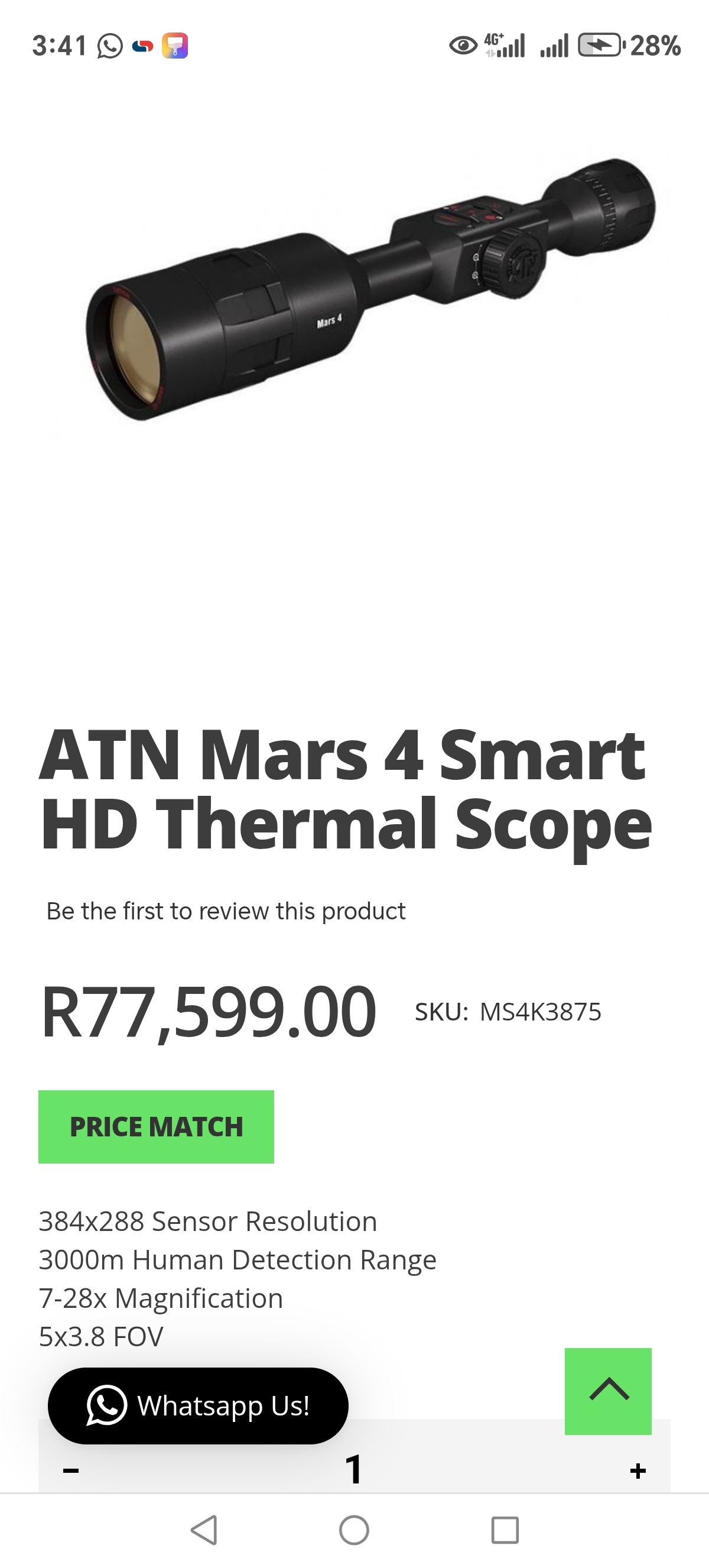 ATN MARS 4 SMART HD THERMAL RIFLE SCOPE for sale R40000 or3 what have you to swap for?
