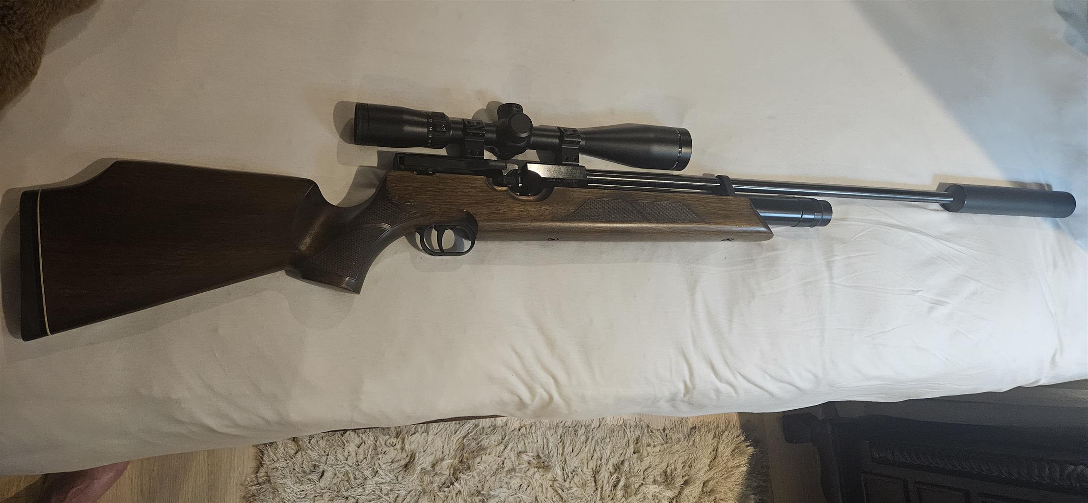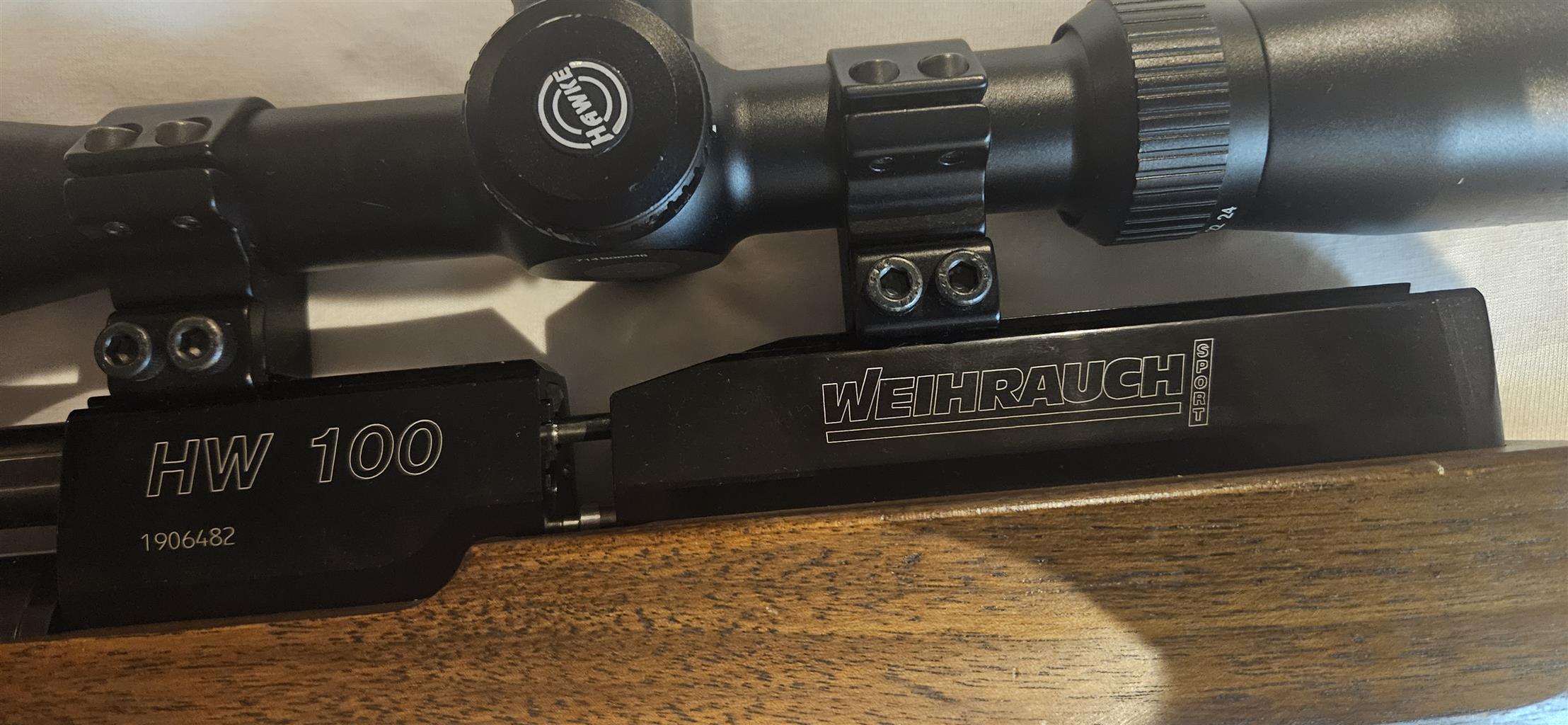 Weihrauch WH100 air Rifle as new.Hardly used.Scope and Silyncer as per photos.Air tank included to refill Rifle