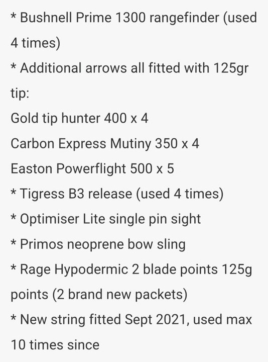 Bundle sale only (as shown in photos)60lb Carbon Rose bow, additional arrows plus 2 packs of new arrows heads, range finder, release. New string fitted in 2022 and used twice after.