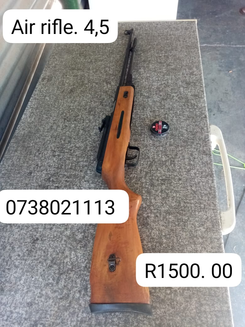 Air rifle for sale. UsedAir rifle 4,5. More details:Intention - For SalePrice - 1500.0Region - North WestCity - Rustenburg