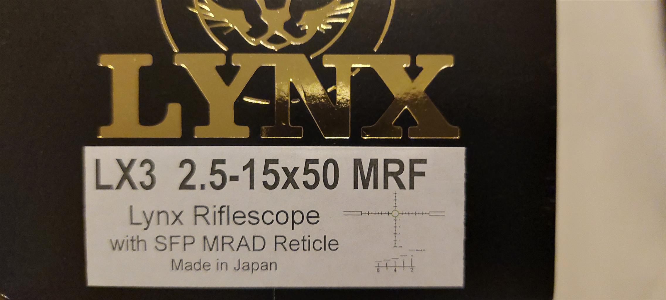 Lynx LX3 2.5-15x50 MRF Rifle Scope for sale.Brand new, never used. Bought March 2023. No longer needed.