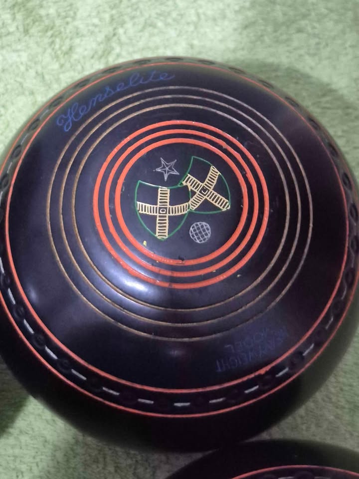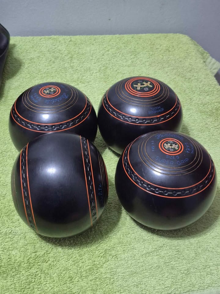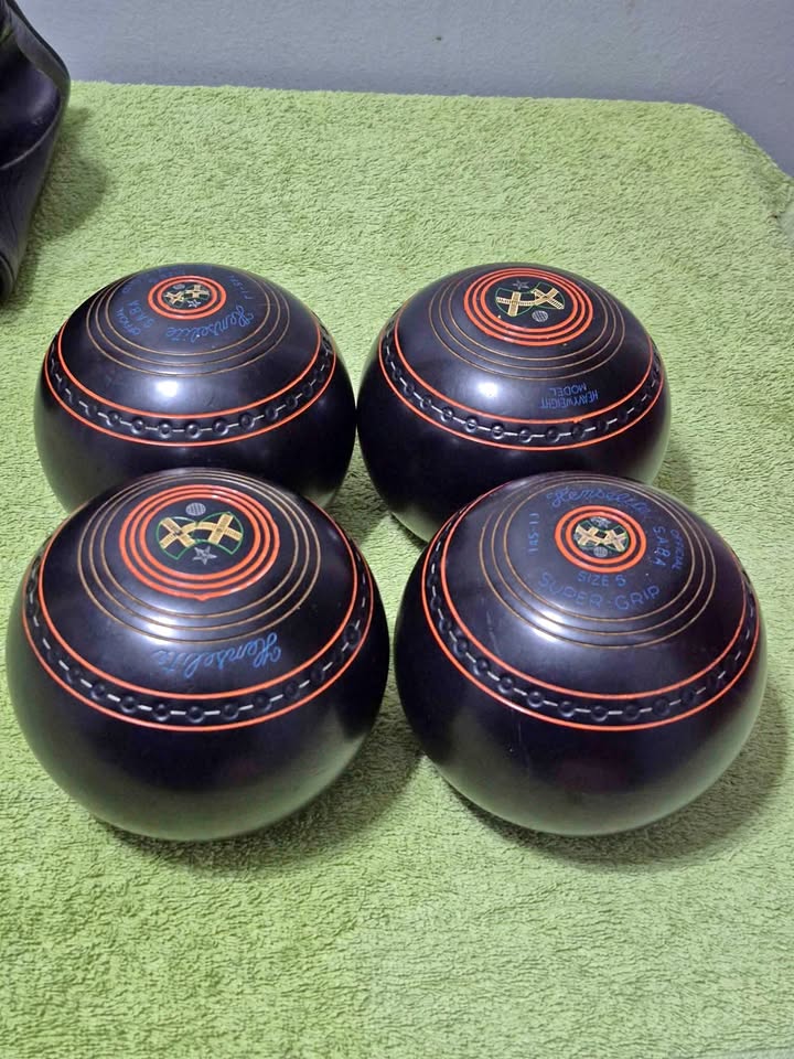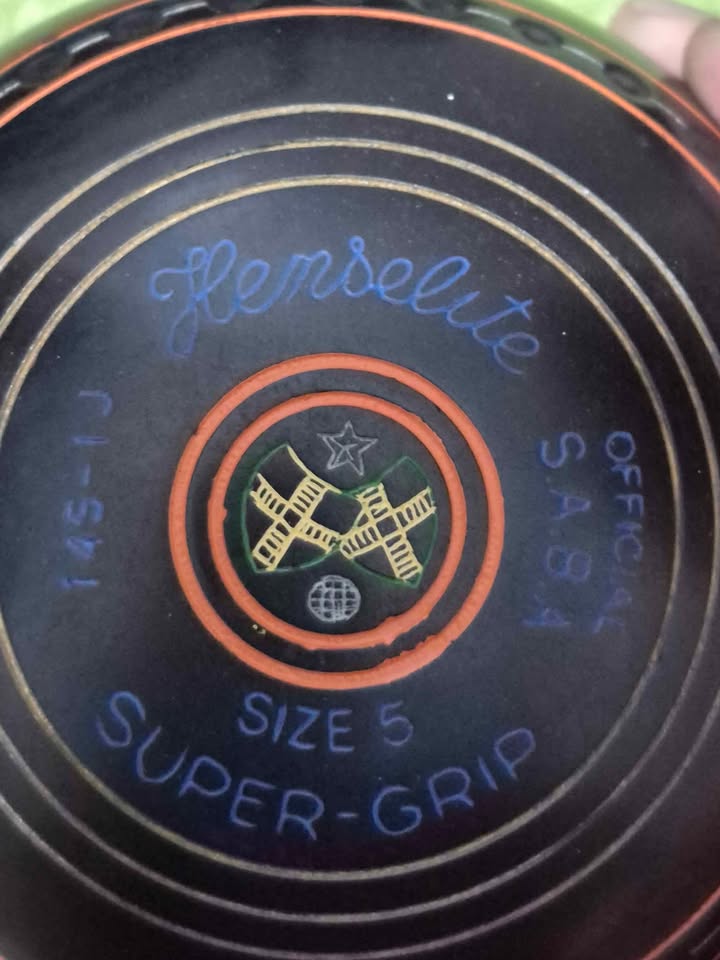 Henselite is a well-known brand in the sport of lawn bowls, with a history spanning over a century. The "Super Grip" designation refers to the grip pattern designed to enhance handling and control during play. This particular bowl is a Size 5, indicating its dimensions, and it's a common size used in lawn bowls.