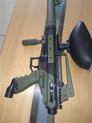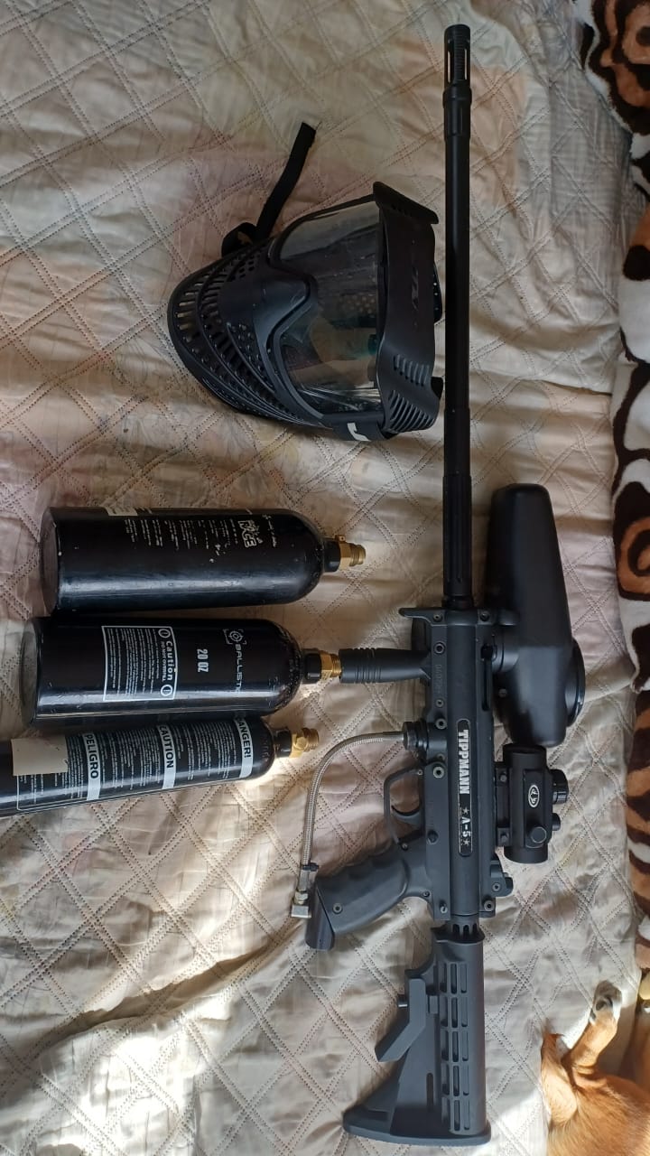 Paint ball gun tipman a5 with extendet barrel adjustable stock feeding hopper scope paintbal mask and 2 ×20oz cylinder plus 1×9 oz cylinder